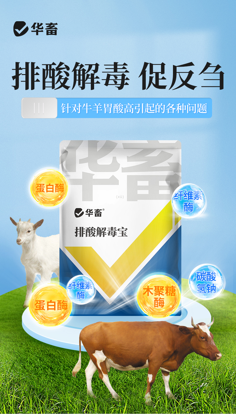 华畜 排酸解毒宝1kg 牛羊瘤胃 胀气 过料严重 采食量下降 拉稀腹泻