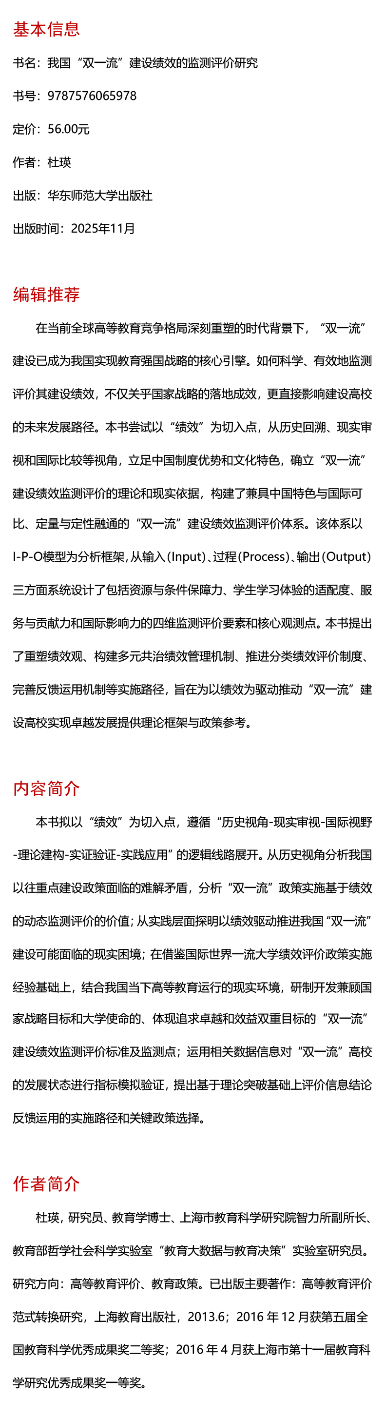 我国“双一流”建设绩效的监测评价研究 杜瑛 高校未来发展