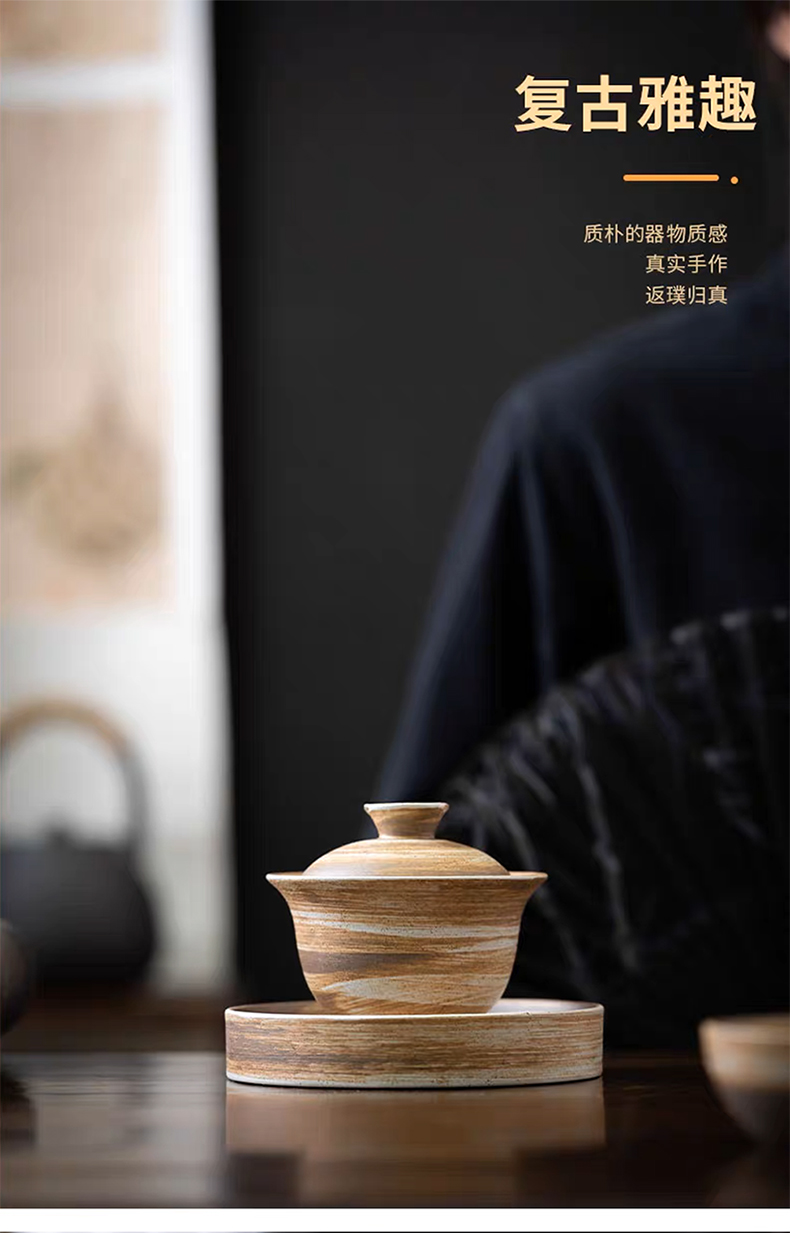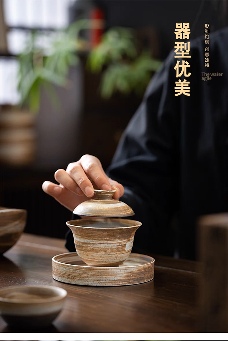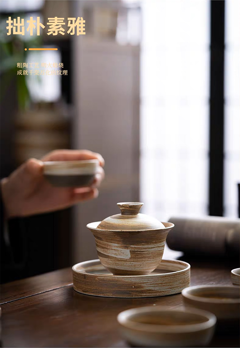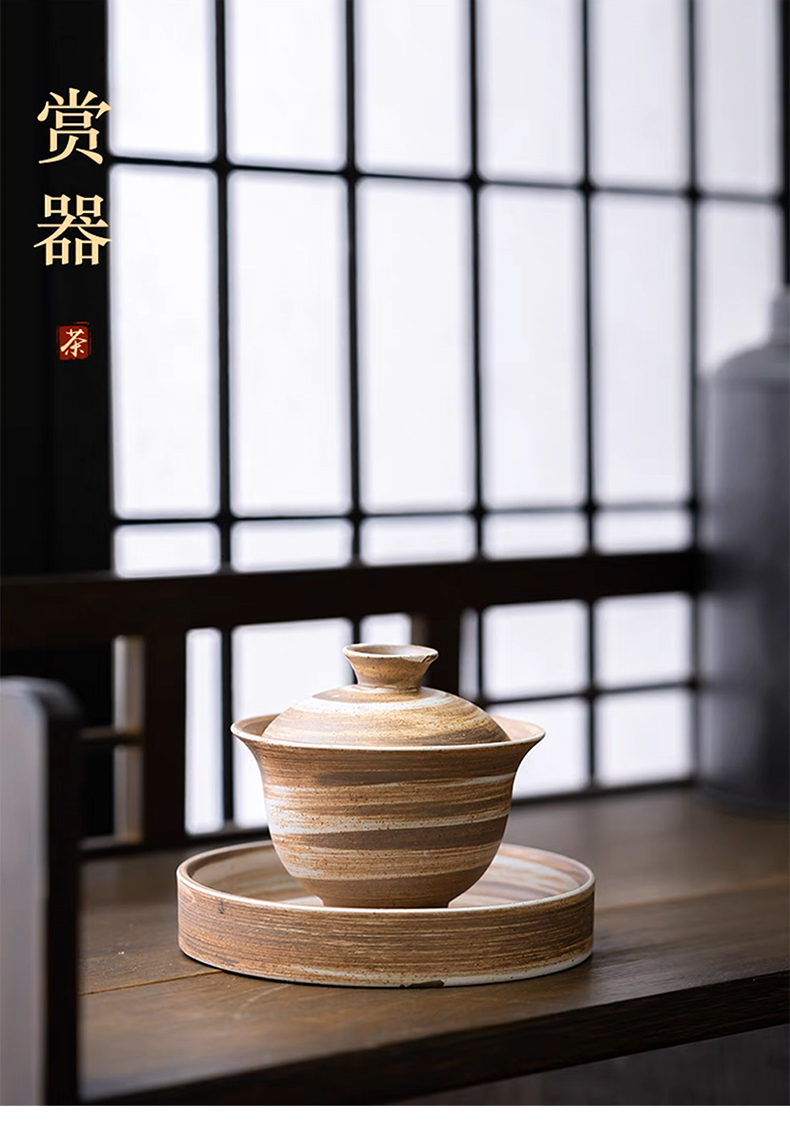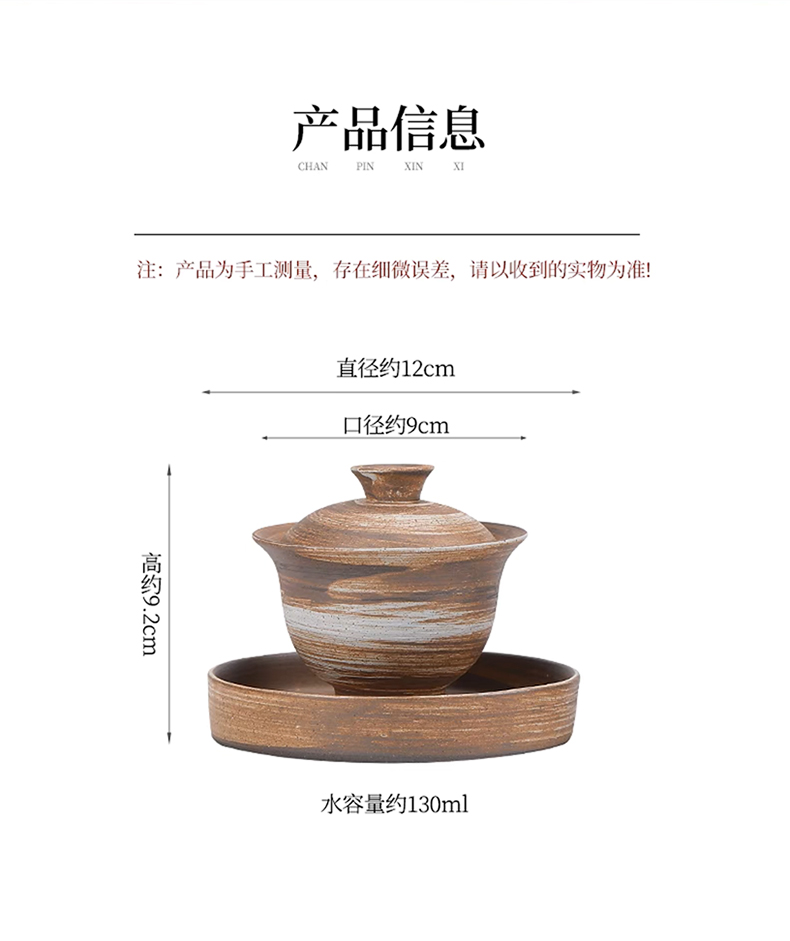 沁茶悦旅丨粗陶三才盖碗 茶具 泡茶 130ml