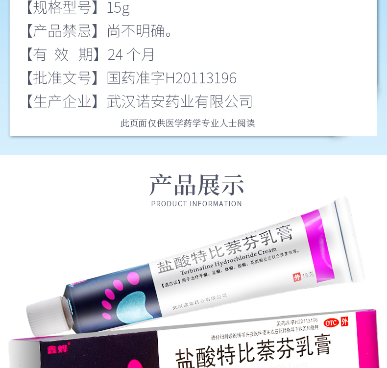 鑫烨盐酸特比萘芬乳膏15g手足癣体股藓去脚气膏药治脚气真菌感染
