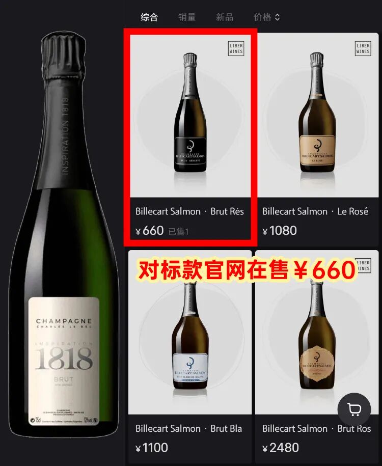 这个非常容易理解,因为同样一款酒,Billecart Salmon的标是这款高端渠道隐藏标的一倍以上!