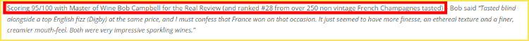 95分,Bob Campbell&品鉴250多款非年份法国香槟中排名第28: