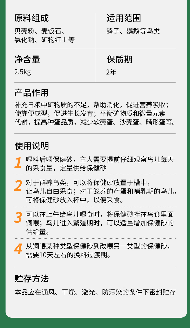 华畜 鸽子保健沙4斤装 高钙鸟食 增进食欲 强化骨骼 帮助鸟儿消化 适合多种鸟类