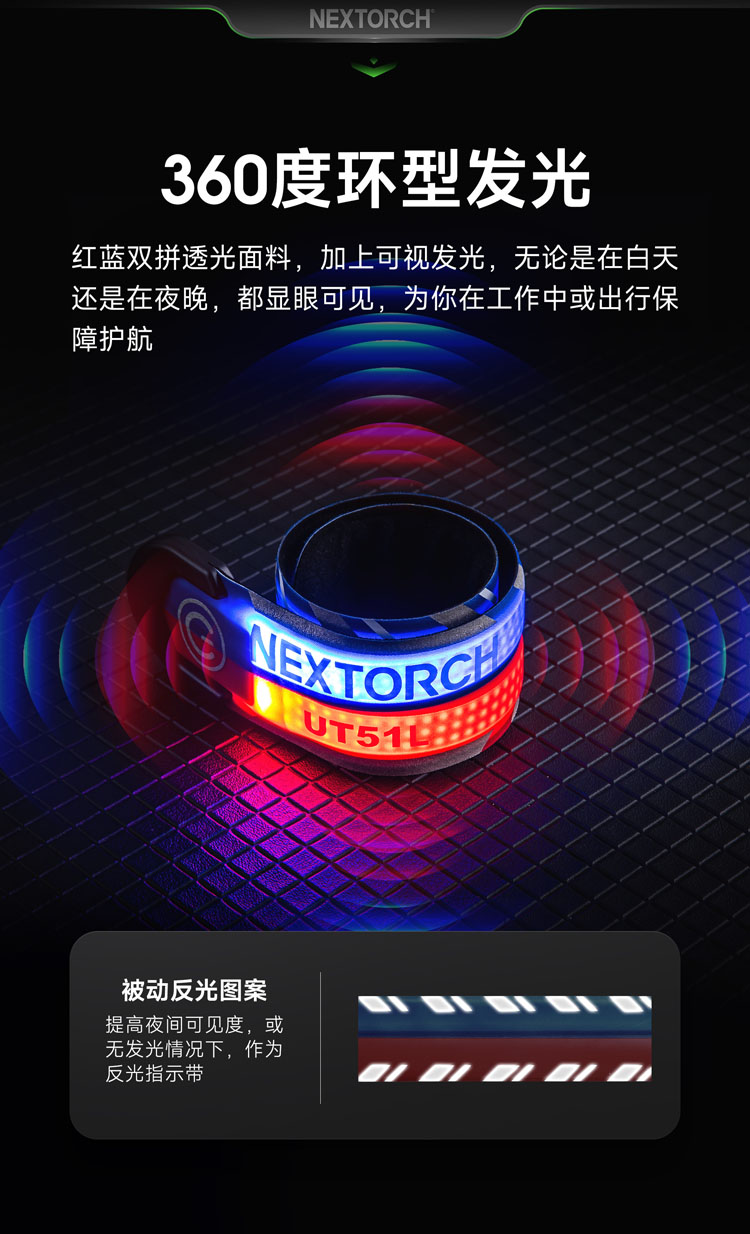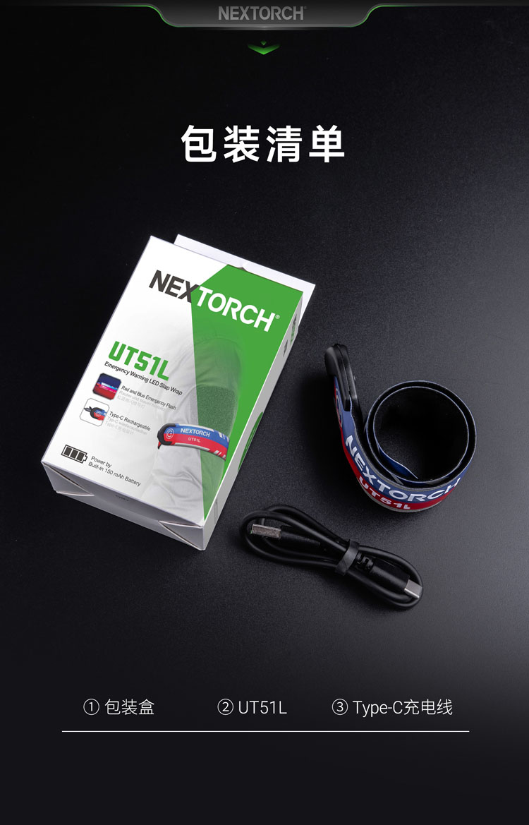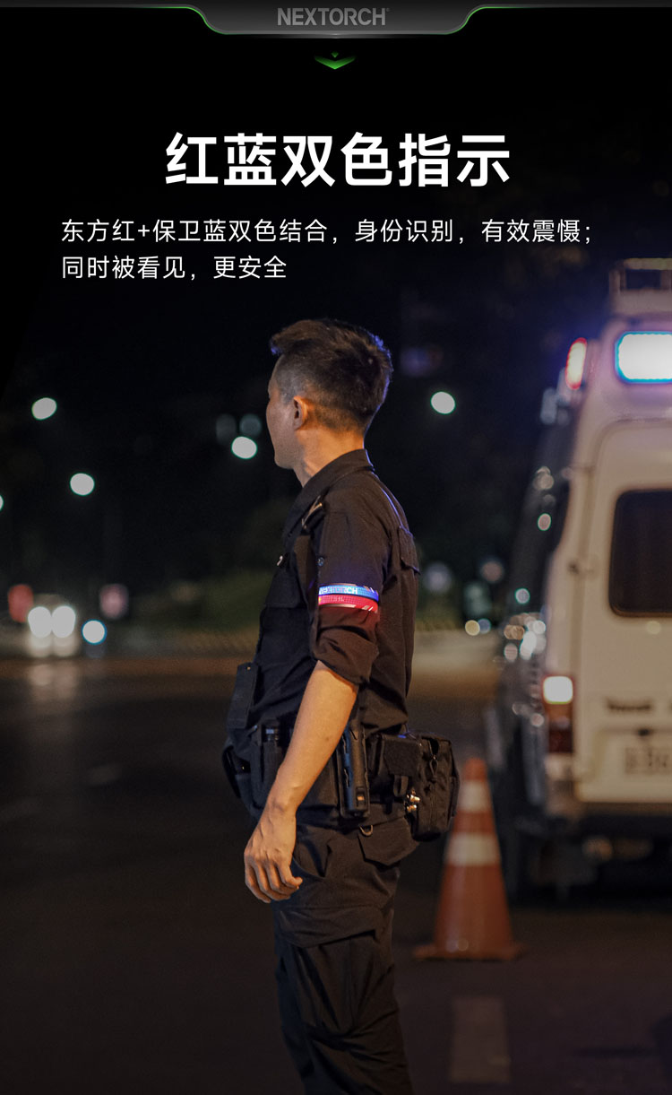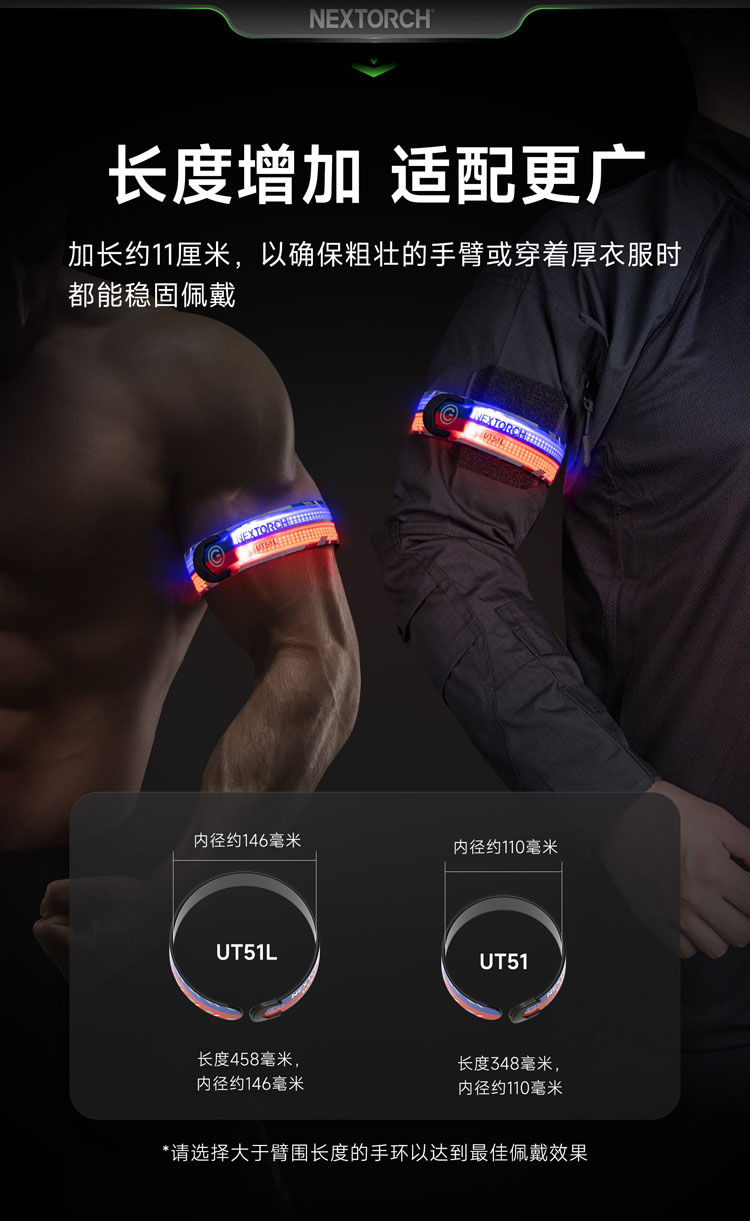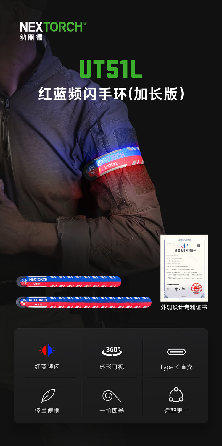 纳丽德 UT51L加长版红蓝闪勤务手环Type-C直充执勤战术夜跑步