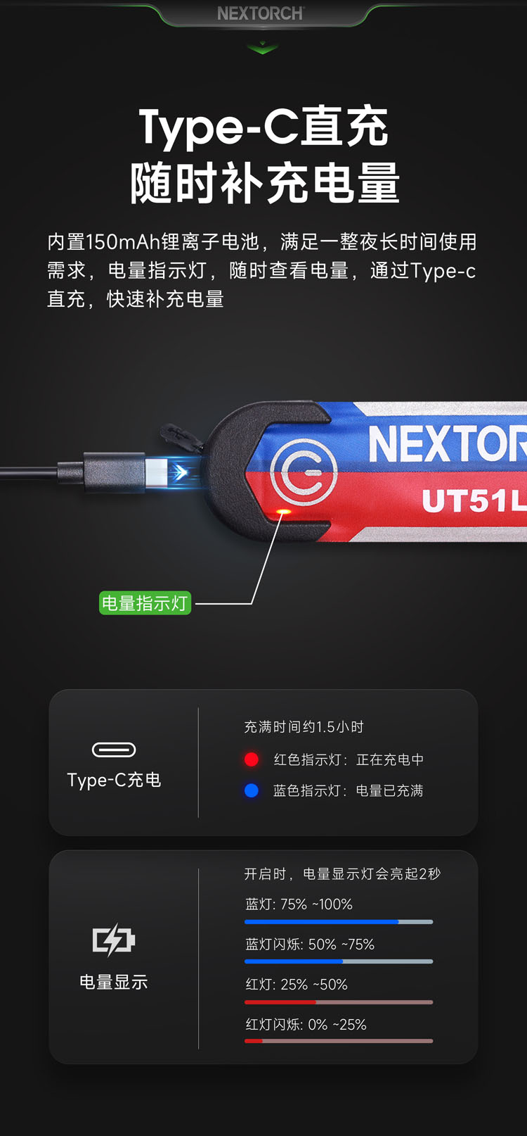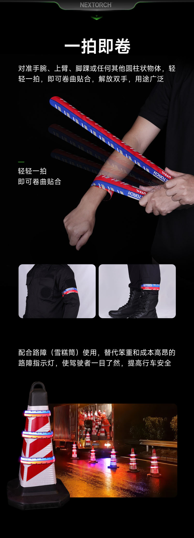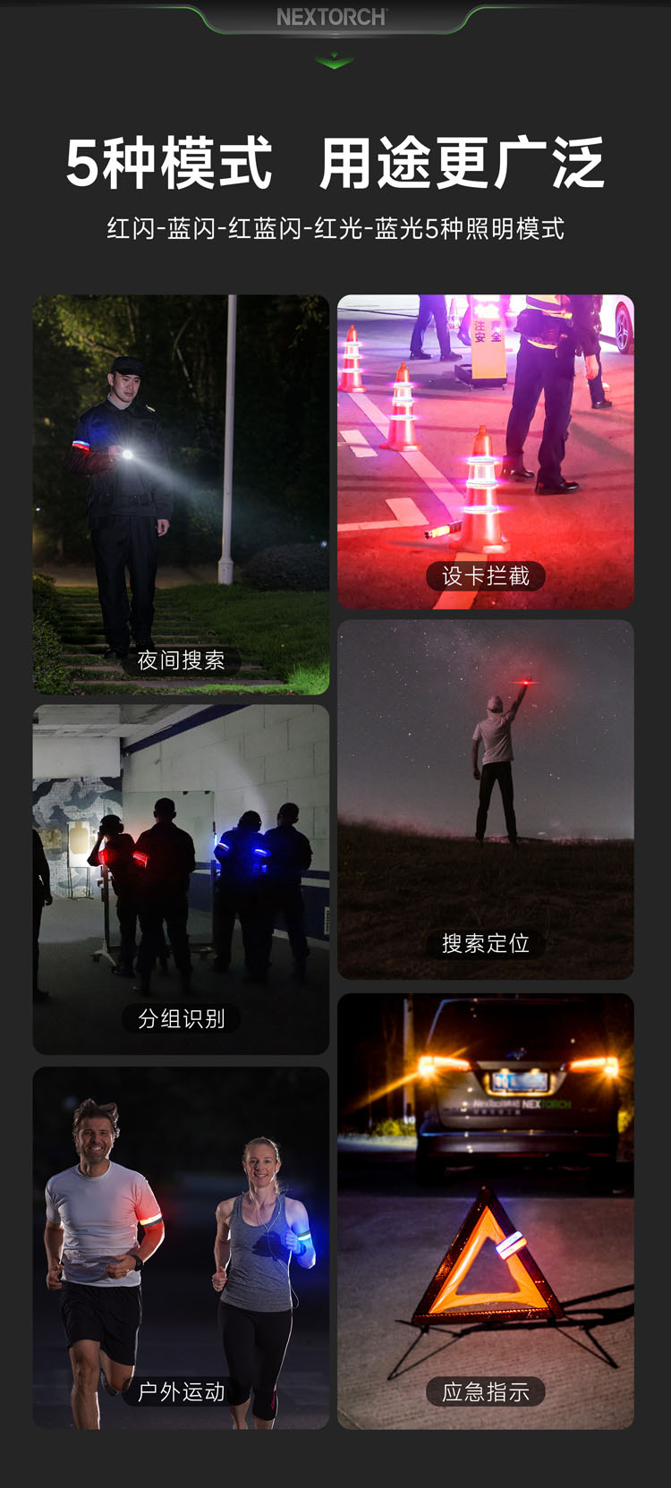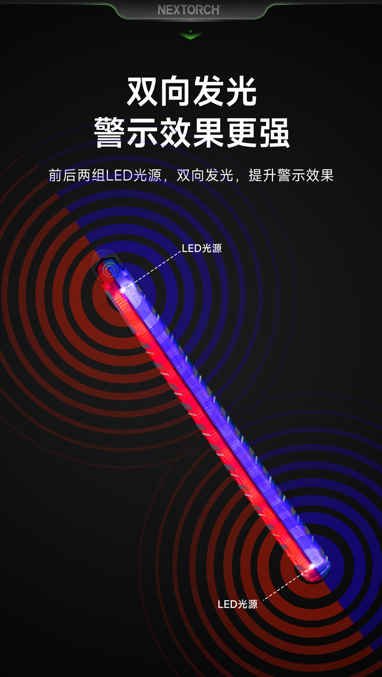 纳丽德 UT51L加长版红蓝闪勤务手环Type-C直充执勤战术夜跑步