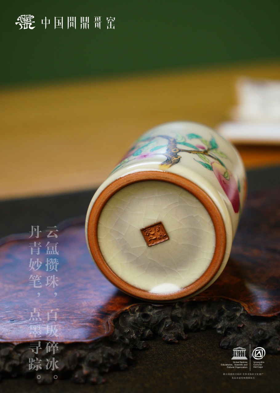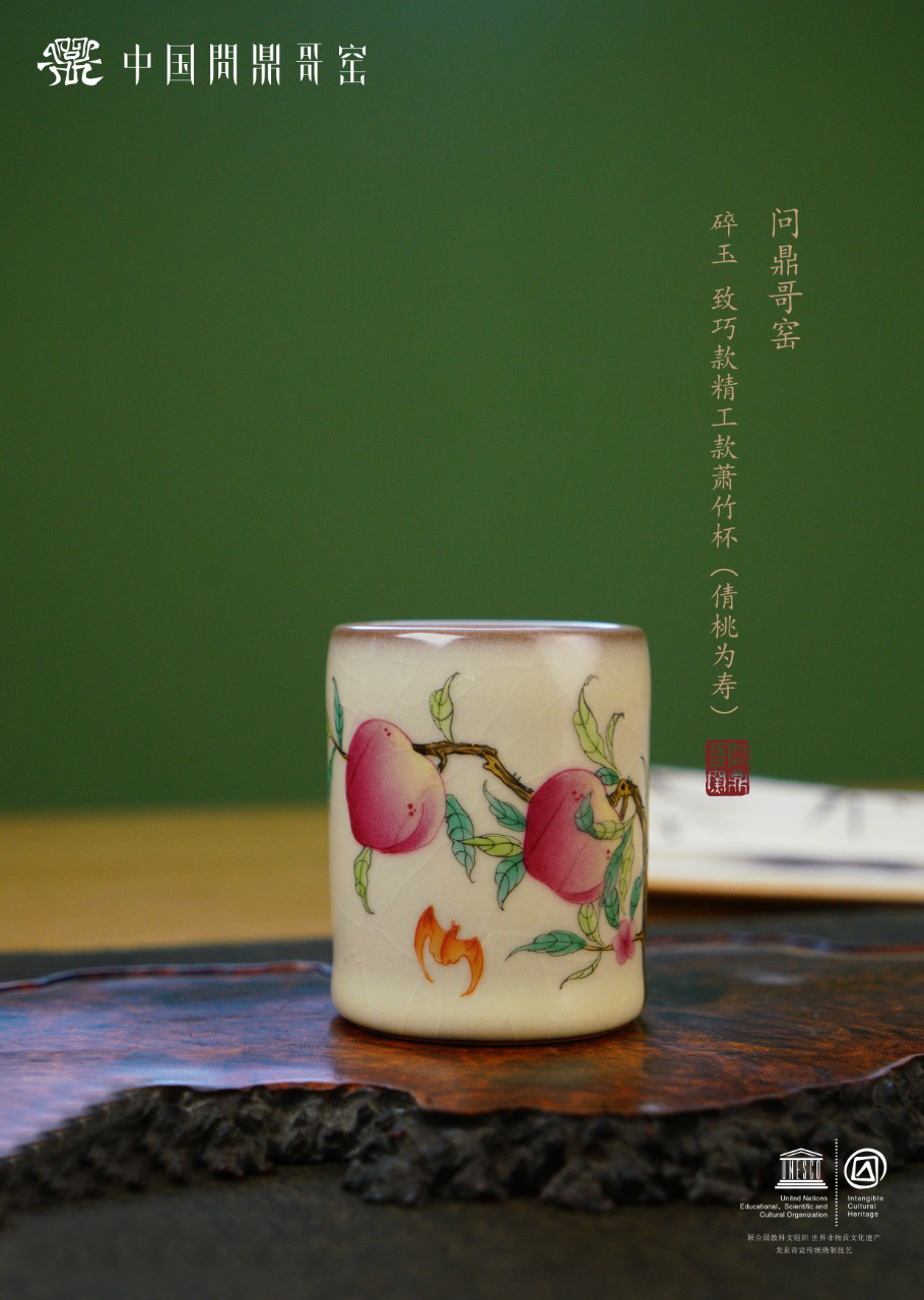 问鼎哥窑致巧款精工款萧竹杯(倩桃为寿)