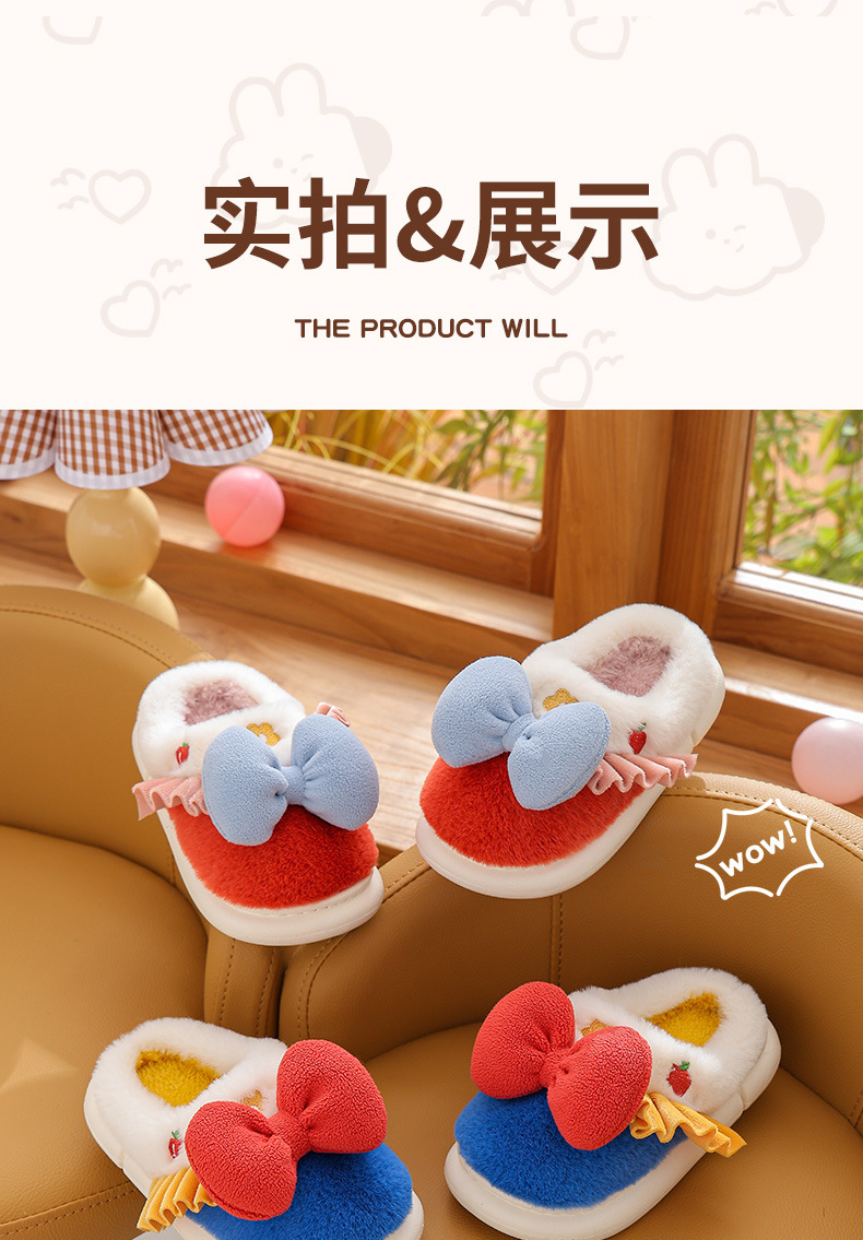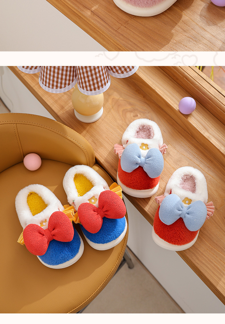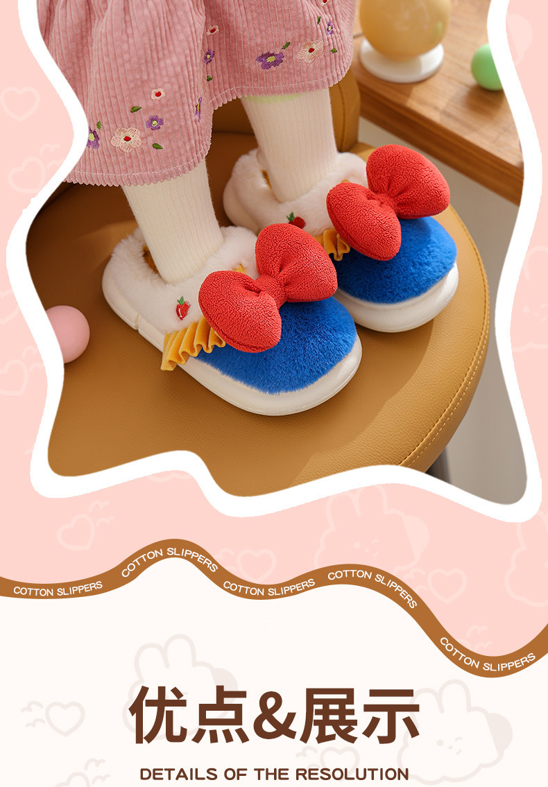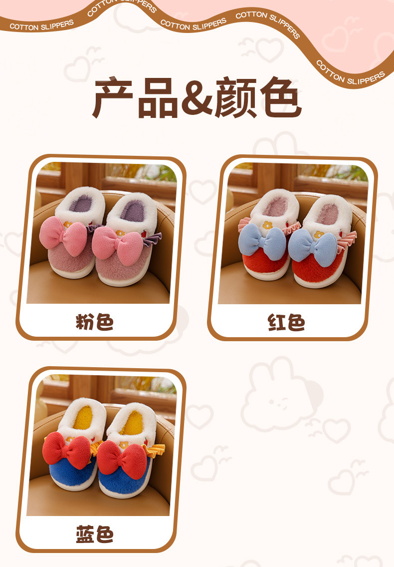 【可爱蝴蝶结公主棉拖鞋】儿童室内防滑保暖中童大童女亲子毛毛拖鞋冬