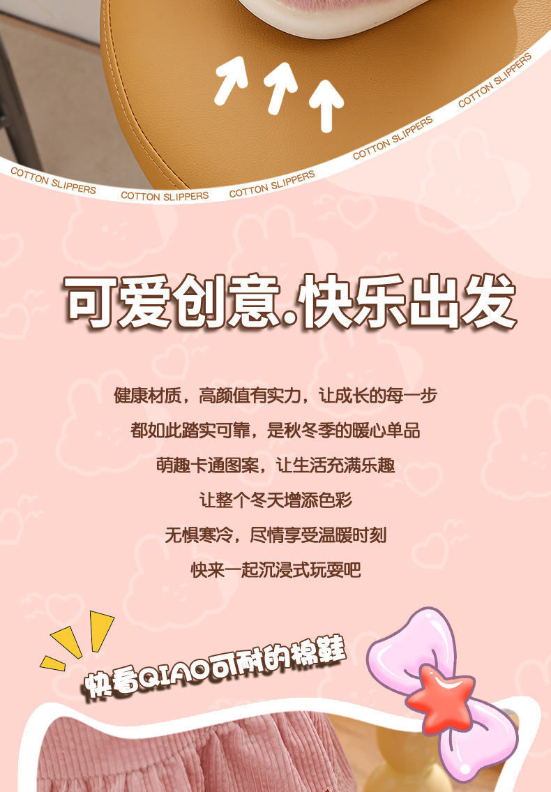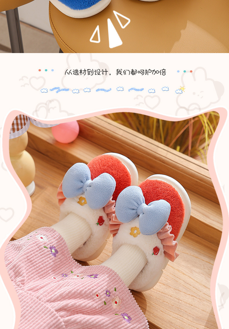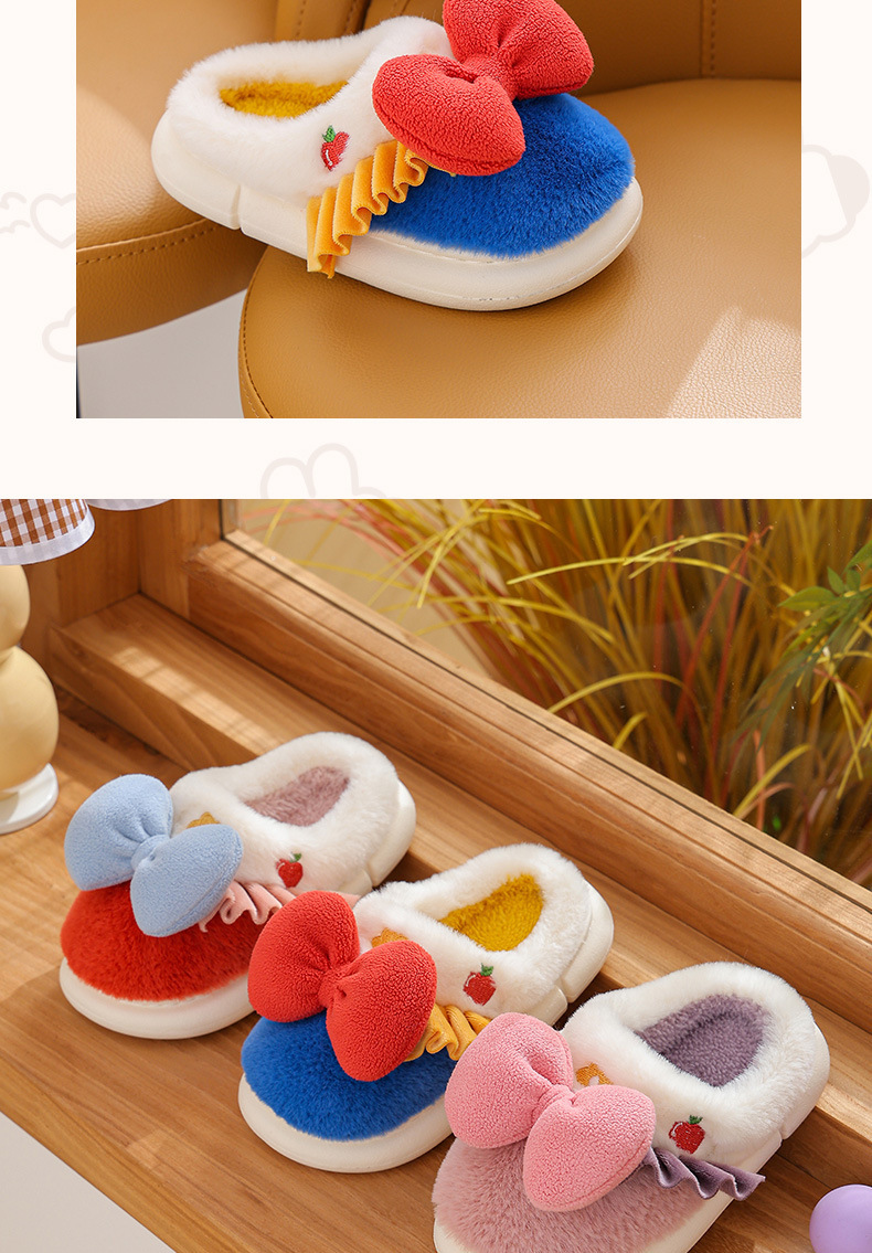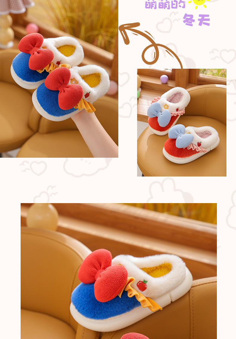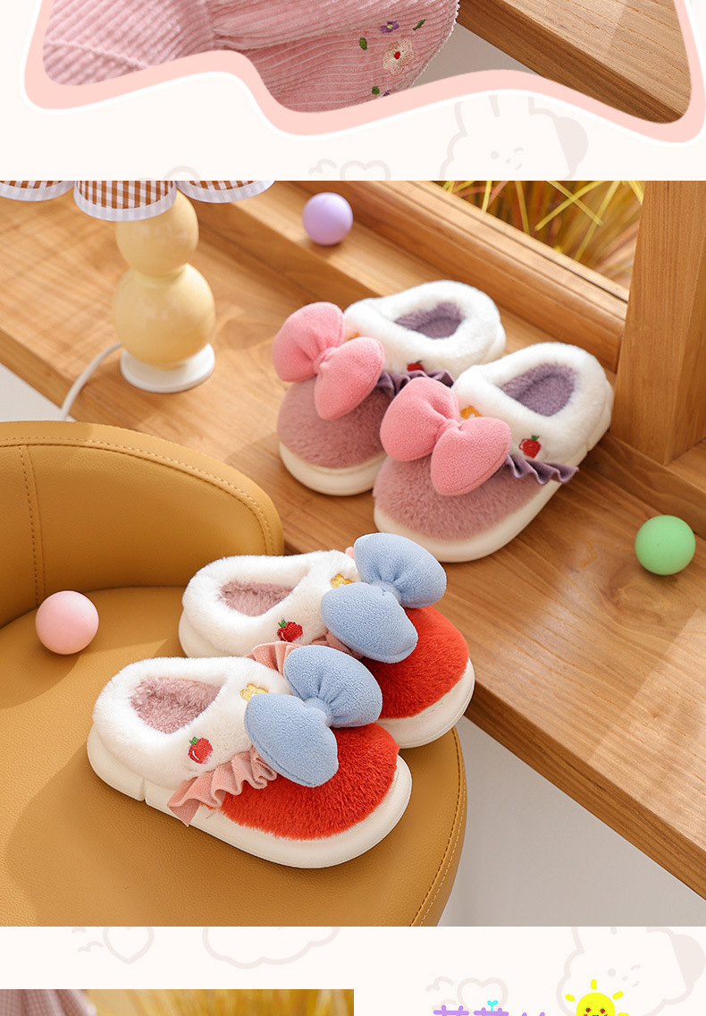 【可爱蝴蝶结公主棉拖鞋】儿童室内防滑保暖中童大童女亲子毛毛拖鞋冬