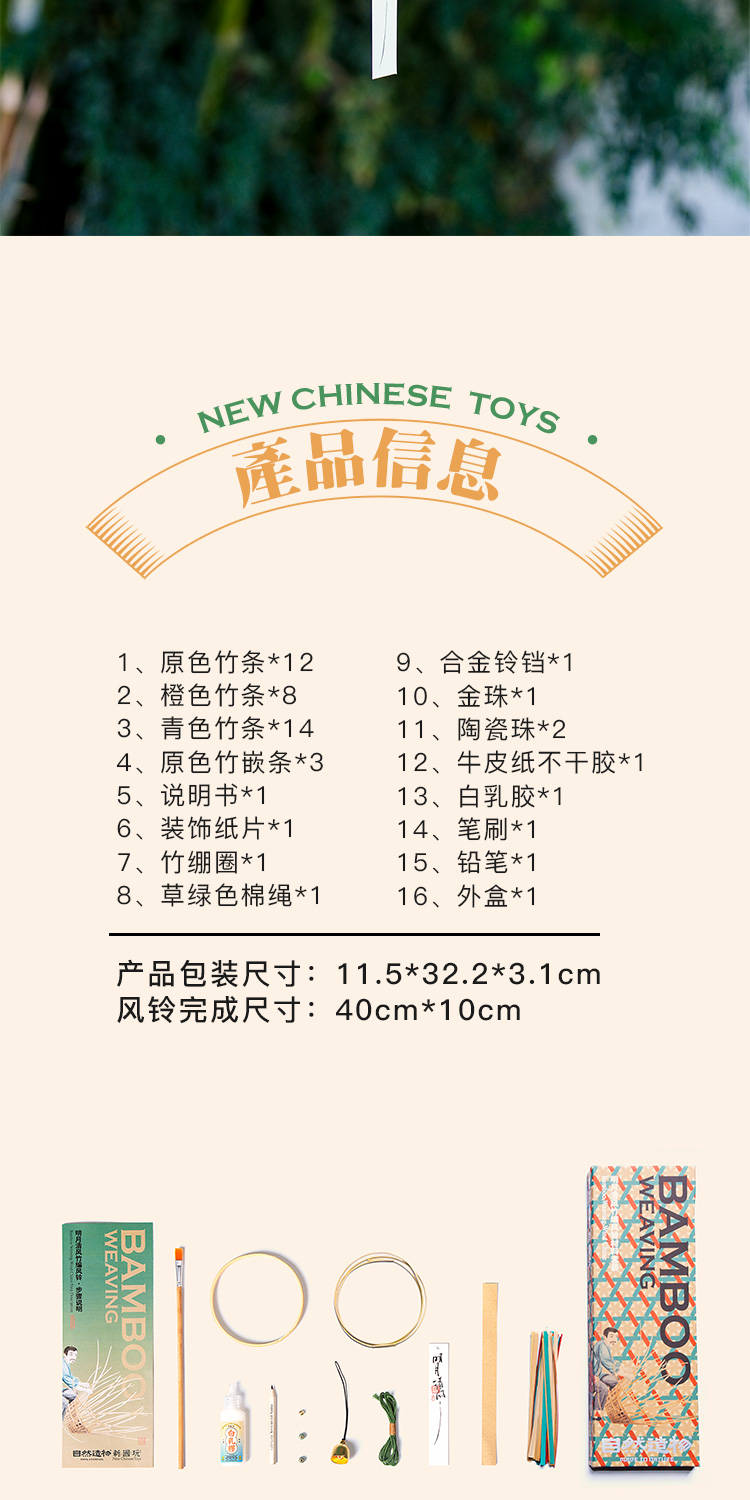 自然造物风铃挂饰DIY竹编手工亲子有趣夏日和风铃文创情人节礼物