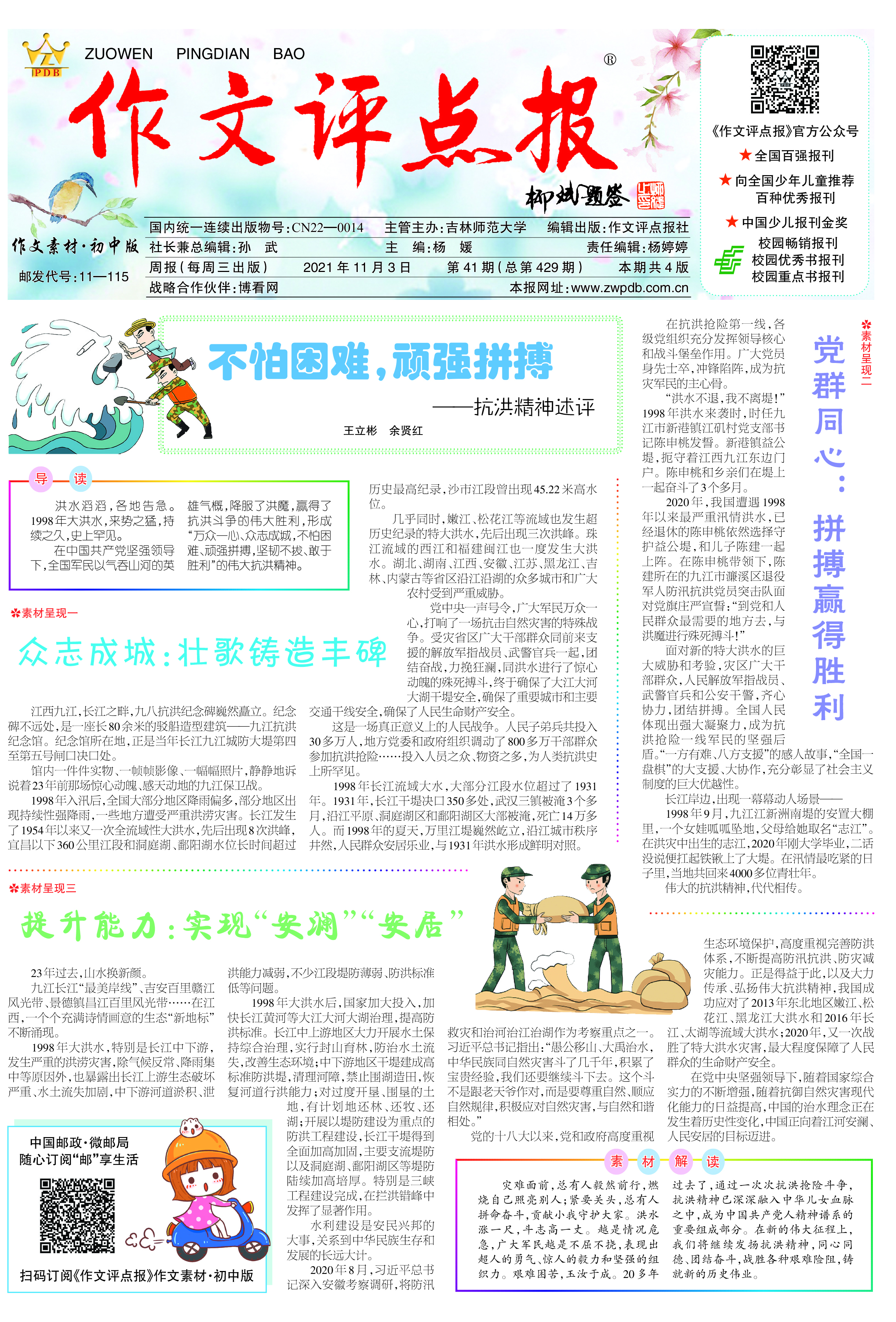 三、增值服务。订阅《作文评点报》,每月可获赠“作文支招”微课、作文素材包或中考、高考考前押题卷等,扫码获取。