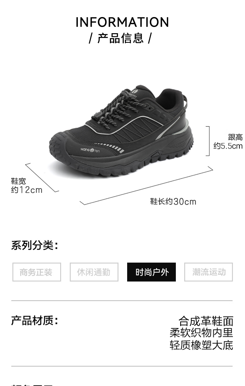 HANGTEN欢腾2026春季男士运动户外厚底增高休闲鞋M6255007D