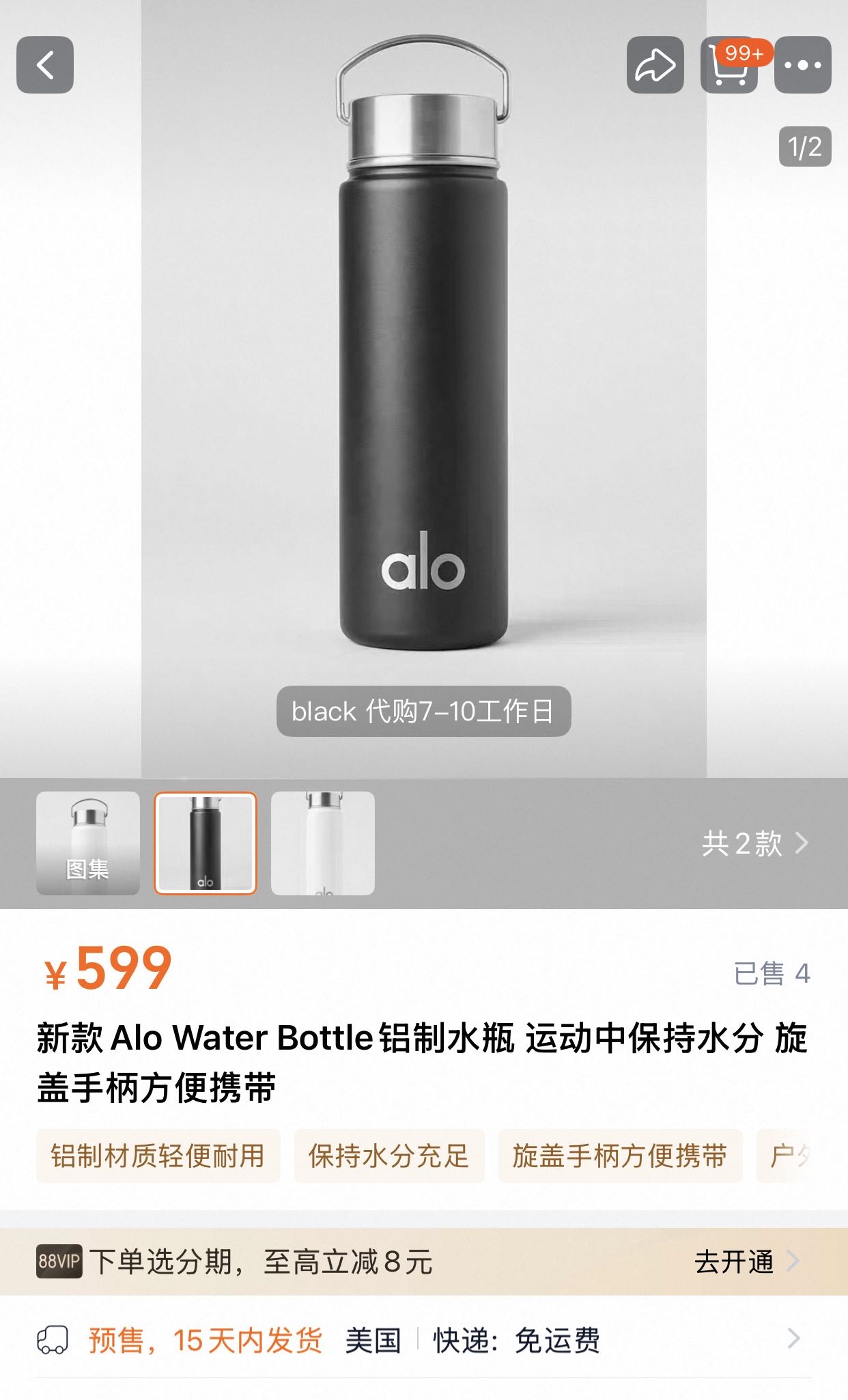 原厂正品韩国超多明星博主都在用!Alo Water Bottle720ml的铝制保温杯 720ml