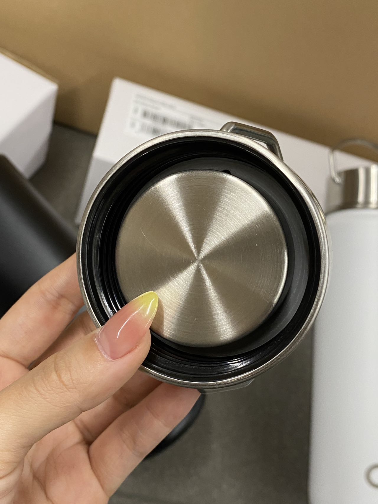 可手提的杯盖,实用性又方便,内里密封硅圈,杯中液体不会漏出来的同时锁温效果也是真的绝