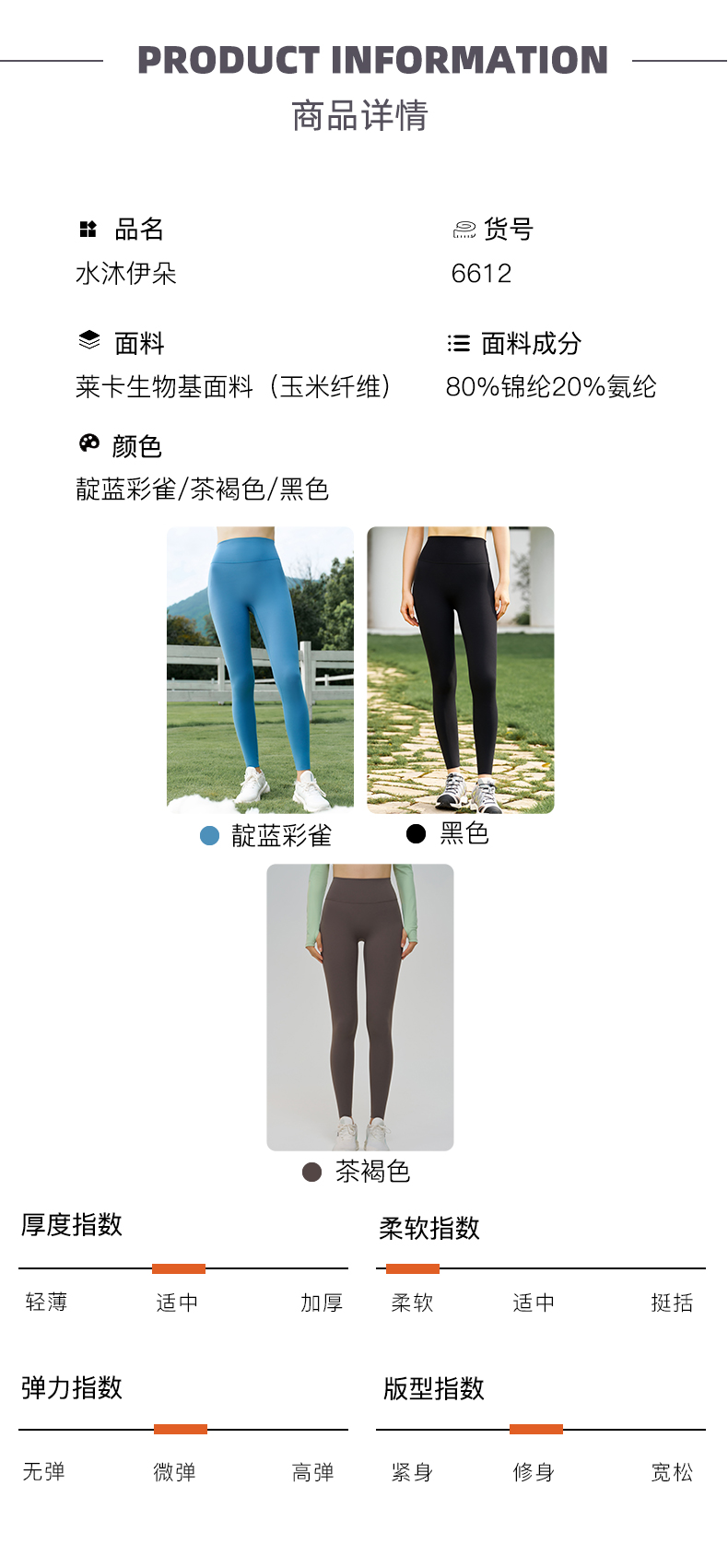 SMOEDOD/水沐伊朵玉米纤维瑜伽裤女耐磨高弹亲肤吸湿排汗速干6612