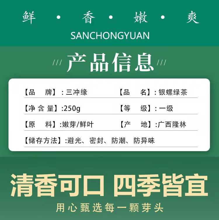 银螺绿茶--广西隆林 一芽一叶 三冲缘 雅韵茶叶高山生态茶 250g铁罐装