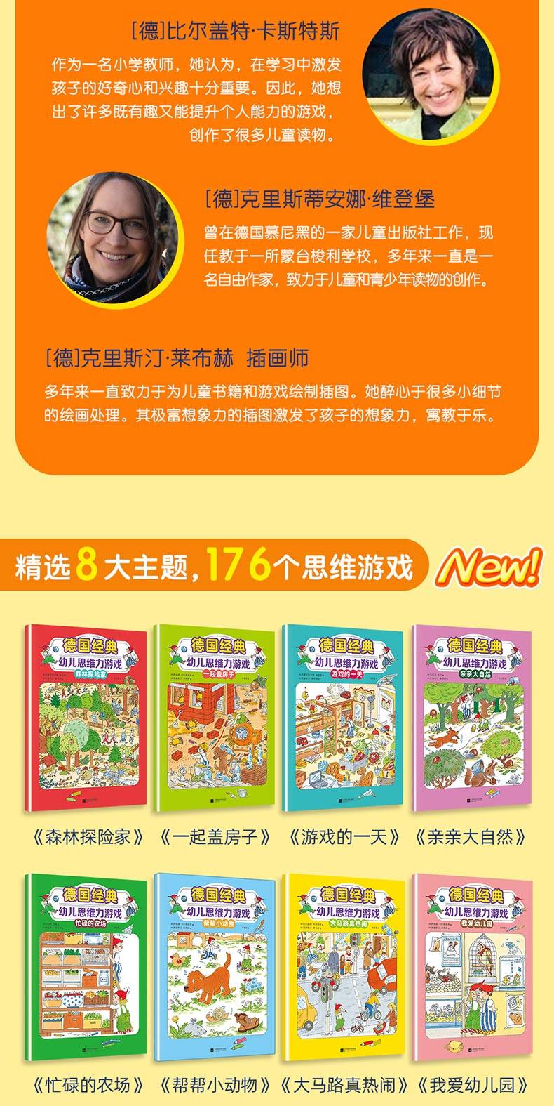 德国经典幼儿思维力游戏全套8册 儿童益智专注力训练3-5-6-7-10岁益智开发早教书籍 宝宝智力思维训练注意力0到3岁到6岁启蒙认知书