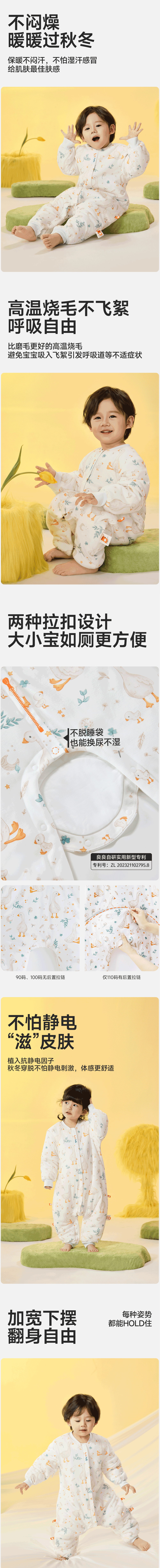 良良漫步鸭夹棉分腿睡袋25wi白花90/48(100/52)