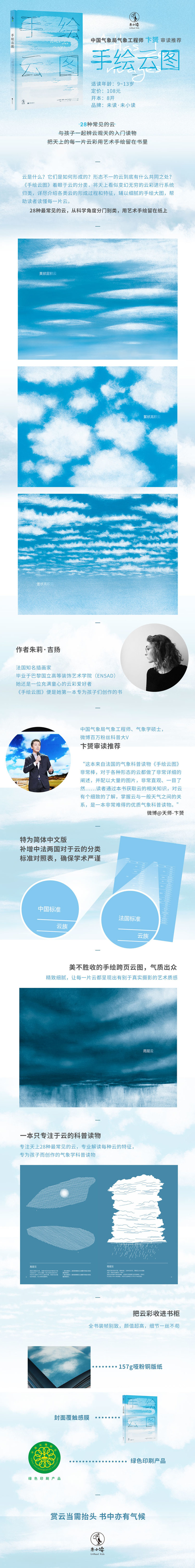 ★美不胜收的跨页手绘,孩子画画时的绝佳模范:由屡获殊荣的法国设计师执笔绘图,精致细腻,每种云的纹理、在天空中呈现的色彩等细节无一遗漏,让每一片云都呈现出有别于真实摄影的艺术质感,与市面上的其他以实拍为主的气象科普书相比,显得气质出众。