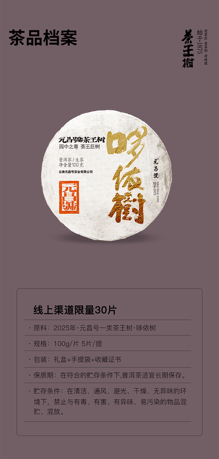 【茶王树系列】元昌号2025年哆依树一类茶王树100克生饼