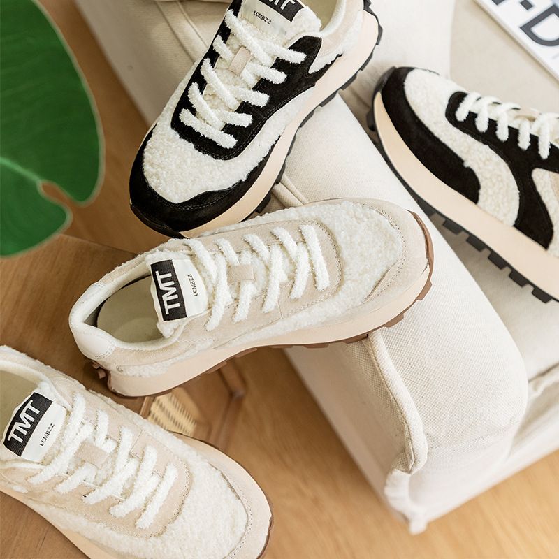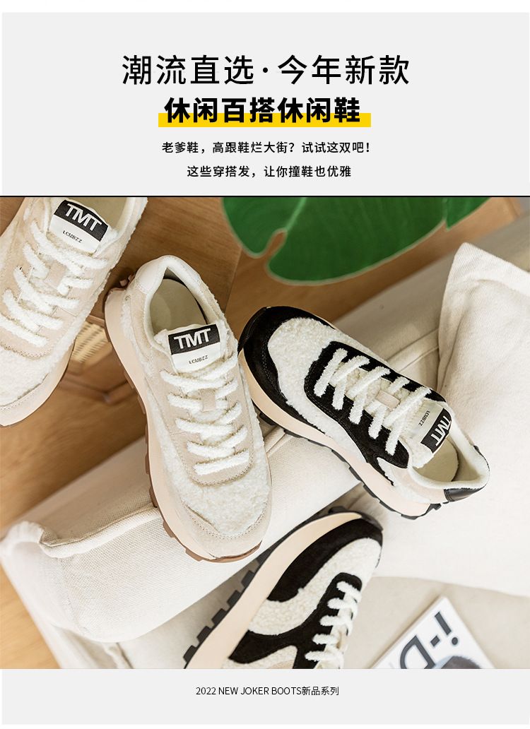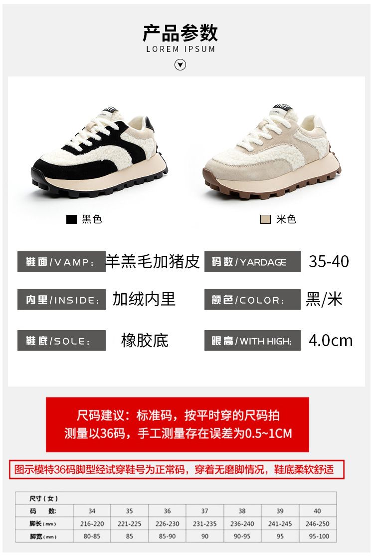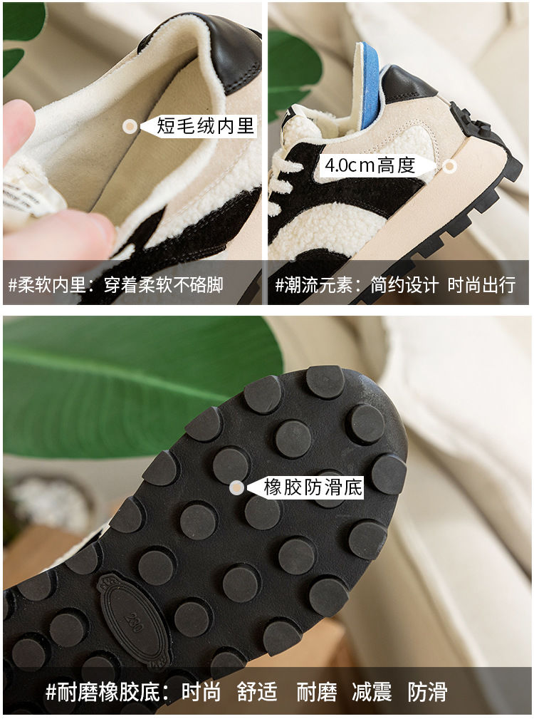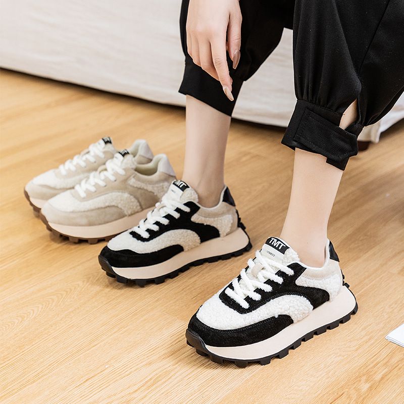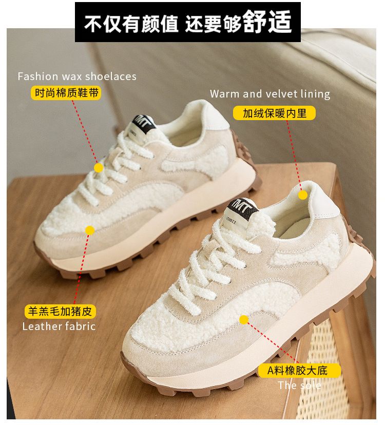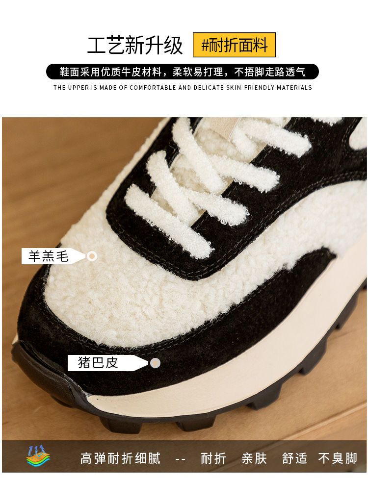 【24小时发货】韩版真皮羊羔毛拼接华夫鞋女2022冬季新款厚底加绒时尚百搭休闲鞋