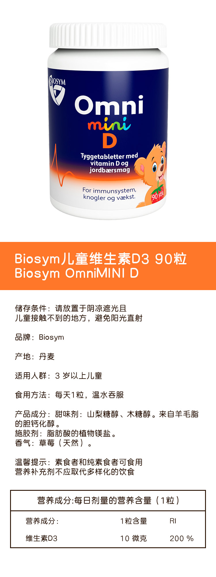 [丹麦]Biosym儿童维生素D3 90粒. Biosym OmniMINI D 90 tab.