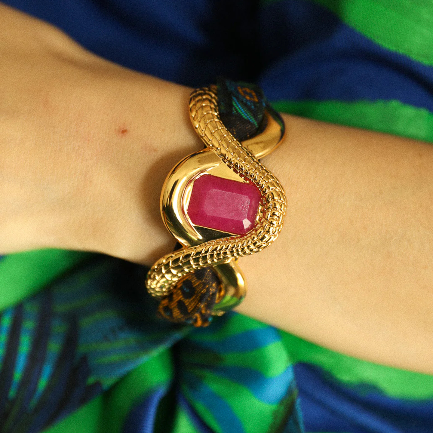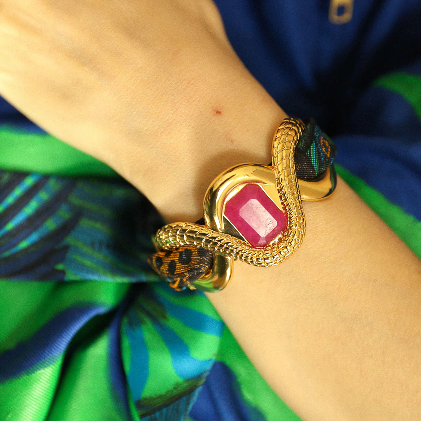 订购8周到|AN-NEE-Caïman avec Agate rose-幻境霓彩 4cm 丝巾手镯[法国设计师]
