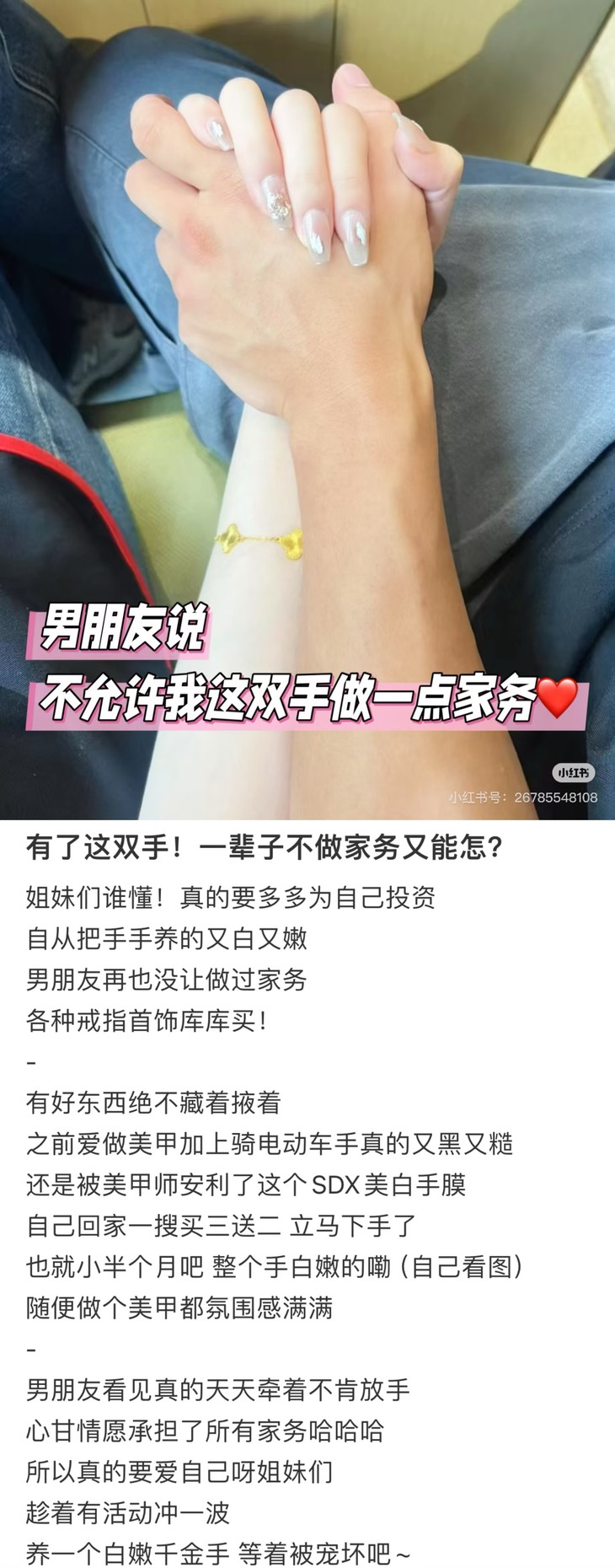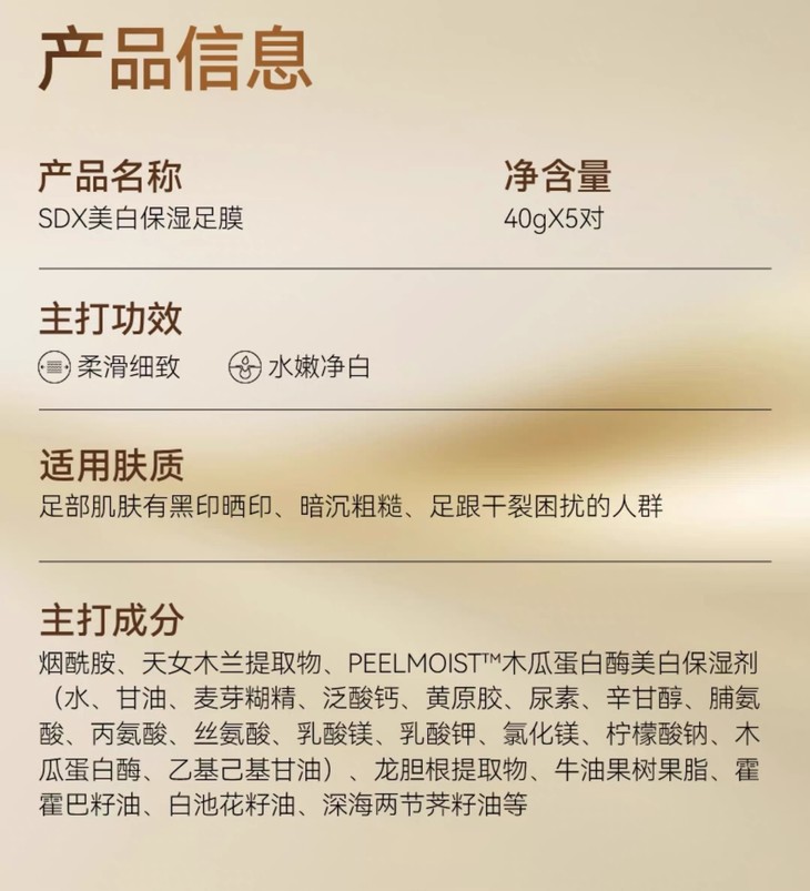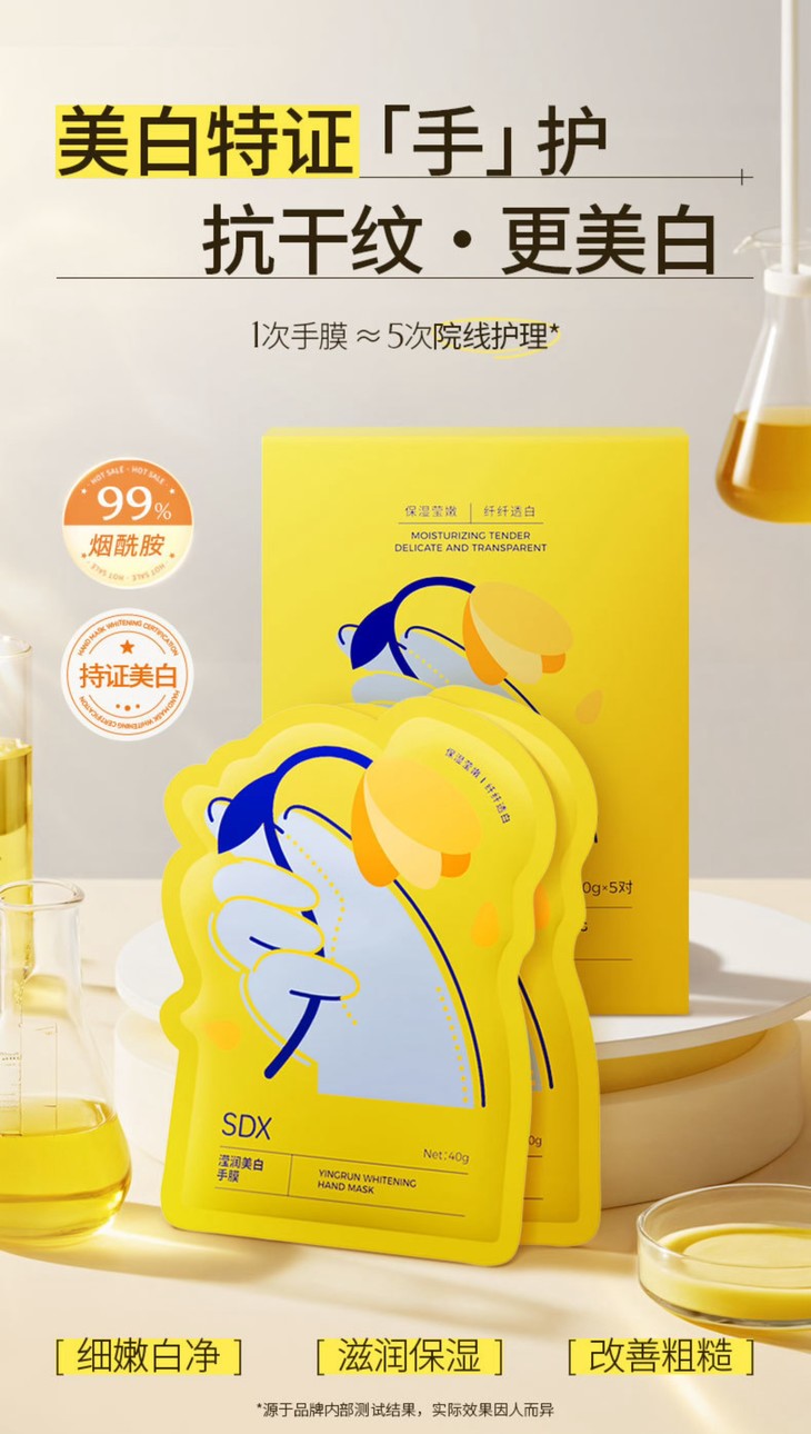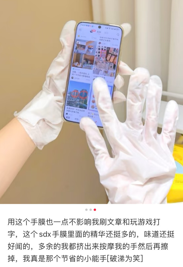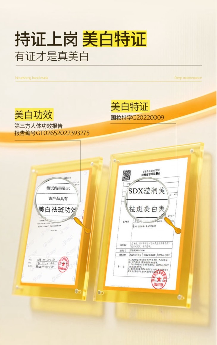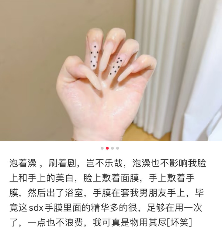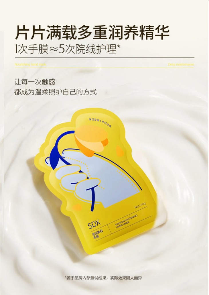 护理可别只盯着脸,手脚作为容易被忽视的部位,一旦变得粗糙,也很容易暴露年龄哦,夏天被晒黑晒干干的,手膜足膜安排上!SDX有国家药监局认证的美白特证的哦,真能让手脚变白,不是表面假白,效果经过专业检验,SDX还专门做了人体斑贴测试,确保不会有不良反应,敏肌也能放心用!而且,还不用特意挤时间:下班回家窝在沙发追剧时,顺手套上膜套,追剧的功夫就能完成护理,敷完不用费劲清洗,揭下来轻轻按摩,精华就能完全吸收,摸起来滑滑的,还不黏腻,体验感超棒!