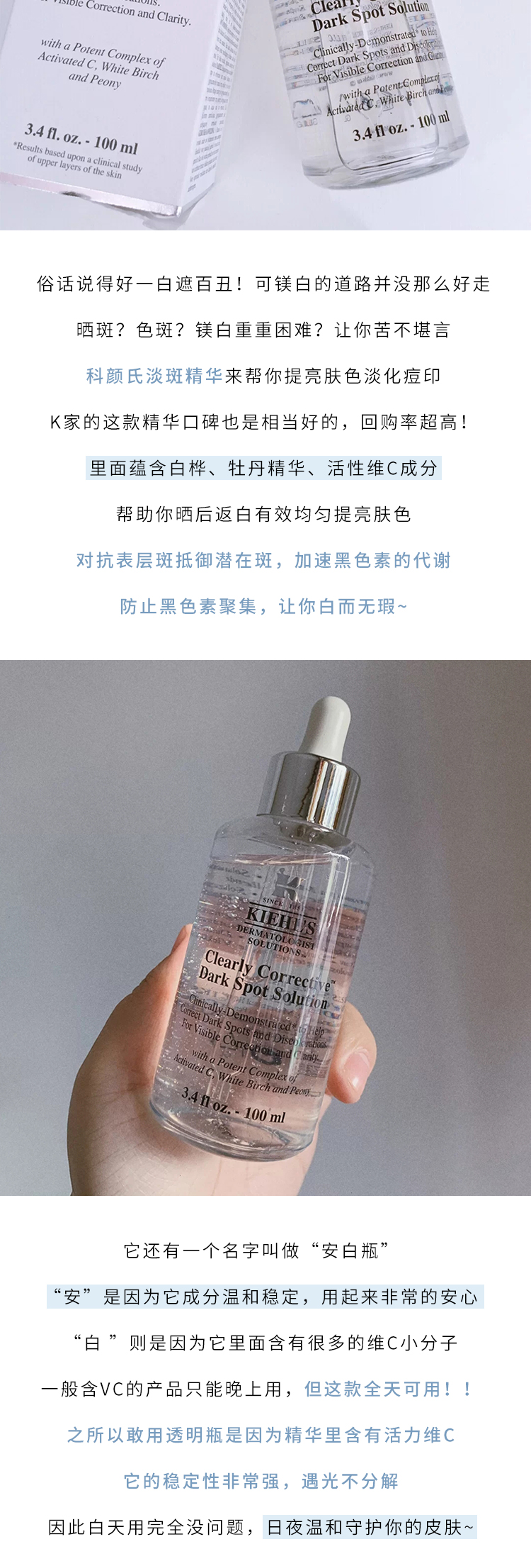 蚂蚁溯源 临期清仓! 科颜氏淡斑精华液100ml 安瓶美白淡化痘印提亮肤色 (效期至2026年12月01日)