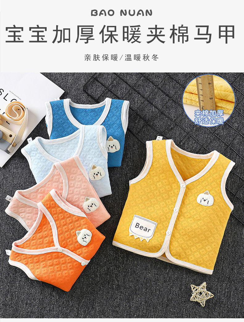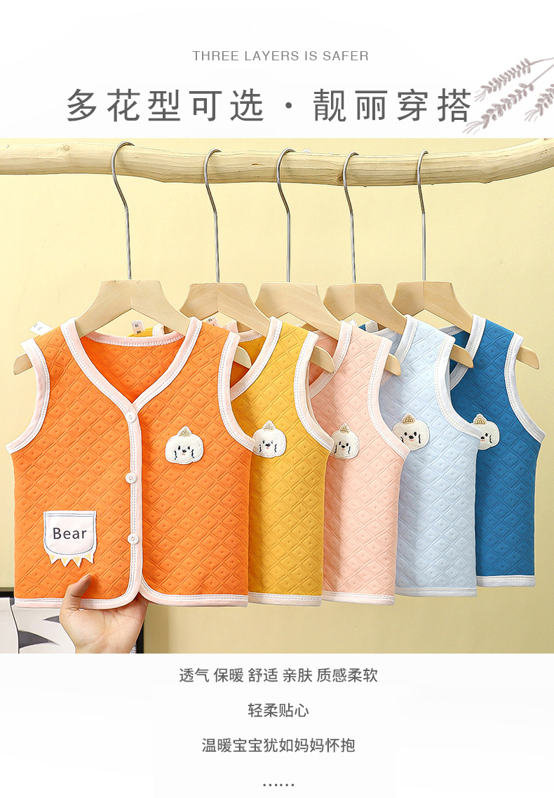 【宝宝加厚保暖夹棉马甲】宝宝三层夹棉针织马甲儿童马甲秋冬款女婴儿内穿坎肩男童加厚马甲