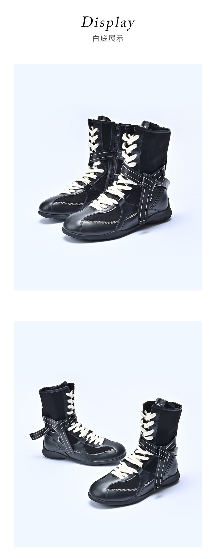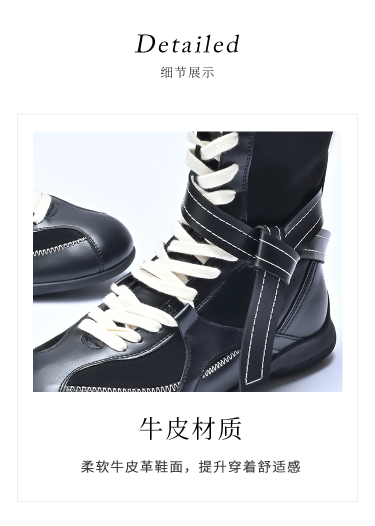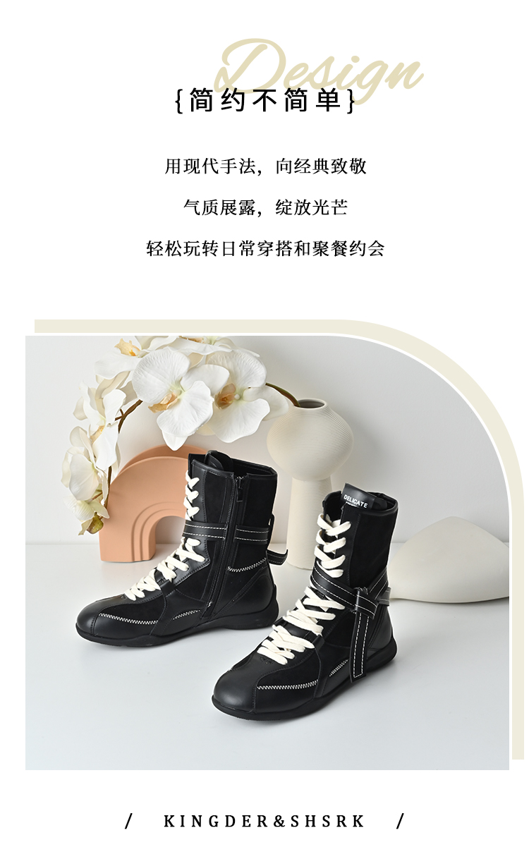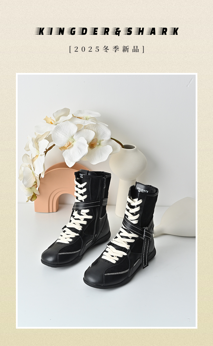 经典鲨2025年冬季专柜新款牛皮革黑色短靴显瘦潮流拳击鞋女KW16-558111