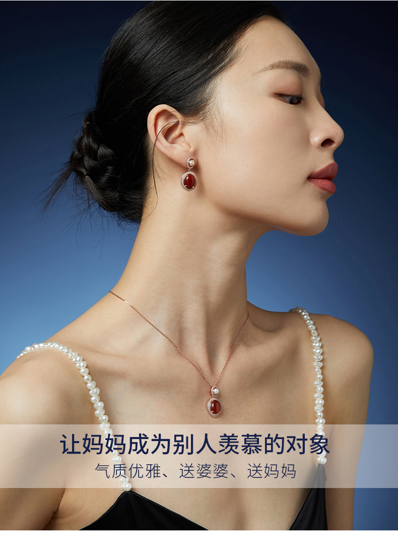 【特价】玉人罗扇系列 耳钉+项链套装 微微瑕 无包装 无证书