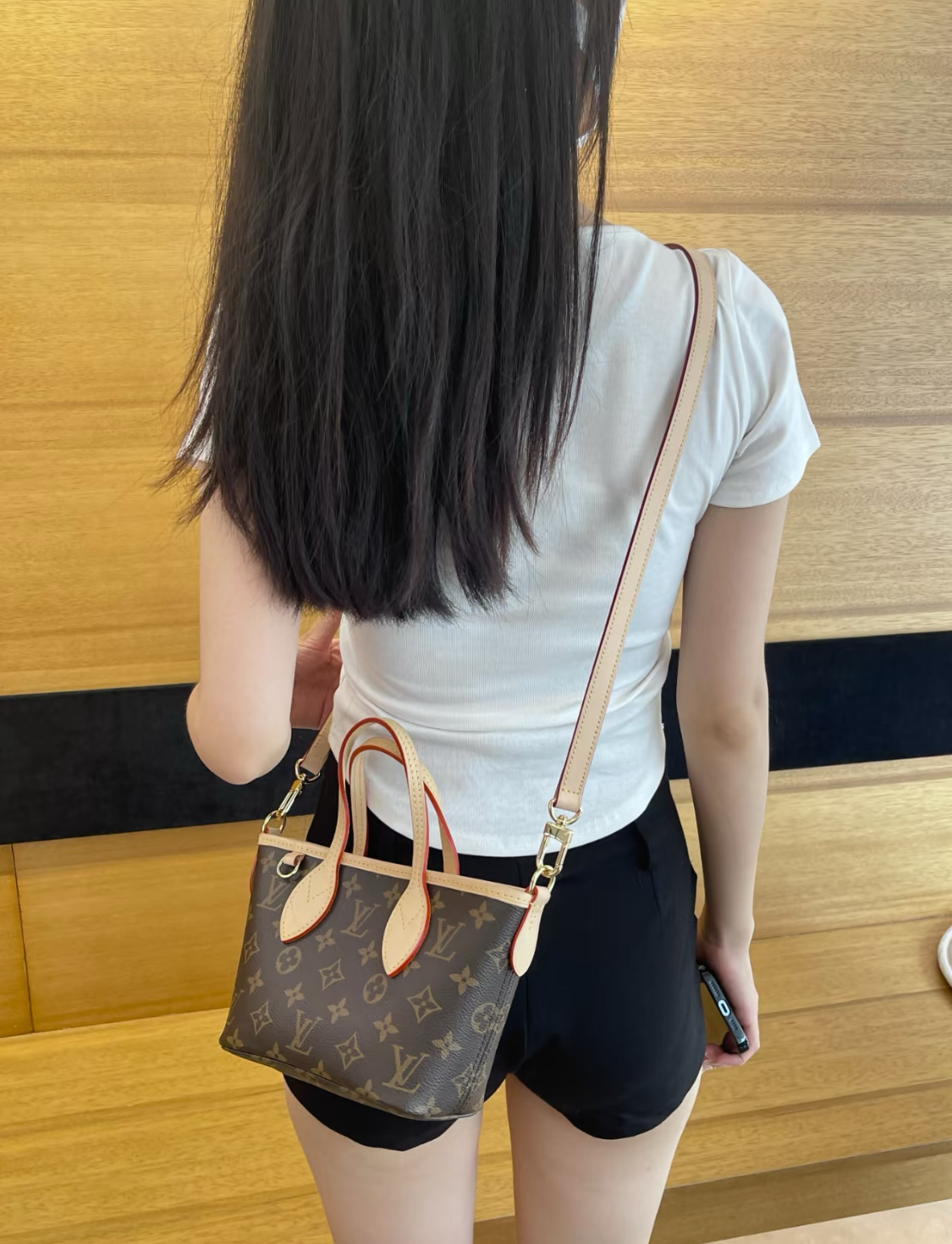 鼎级原单品质,原版钛钢五金!LOUIS VUITTON NEVERFULL 简直是包中的天花板,优雅又不失可爱! 可拆卸可调节肩带拉链开合 涂层帆布 帆布包托特包Tote包购物袋手提包 小号 女款 棕色!NEVERFULL BB 手袋-编码:M46705-官网在售价¥18,200RMB,本款 Neverfull BB 手袋将品牌经典 Neverfull 手袋化为迷你托特包,可容纳智能手机和短款钱包等随行物品。D 形环固定零钱袋,搭配可拆卸并调节的织物肩带。14.5 x 9 x 24 厘米(高 x 宽 x 长度)Monogram 涂层帆布-牛皮革饰边-织物内衬-金属件-拉链开合-内贴袋-D 形环配有可拆卸零钱包-可收纳 6.7 寸智能手机、Rosalie 零钱包、耳机、钥匙和口红-肩带:可拆卸,可调节-包带半长:39.0 厘米-包带半长可调至:58.0 厘米-手柄:双手柄