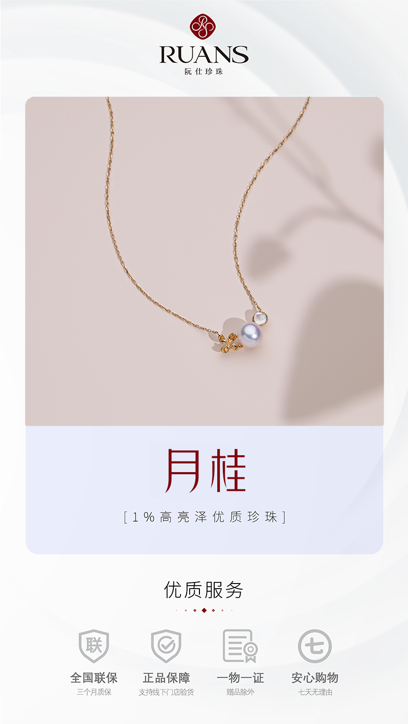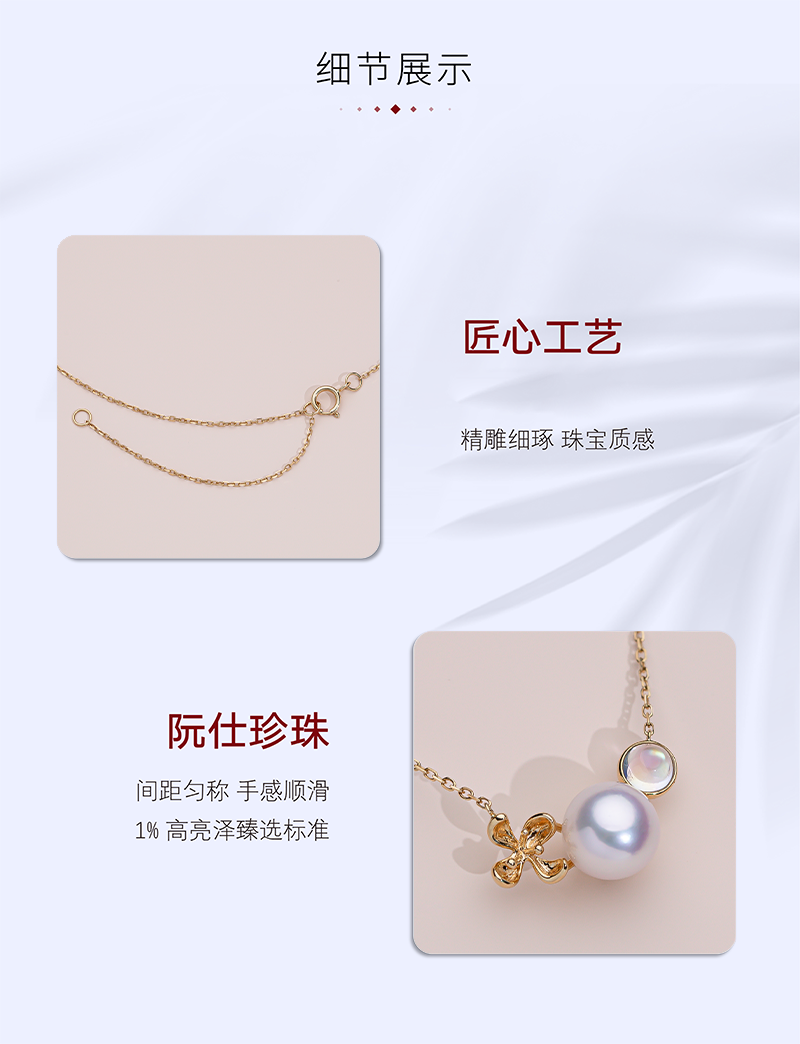 阮仕月桂系列 G18K金日本akoya珍珠链牌 7.5-8mm NY03143YGA