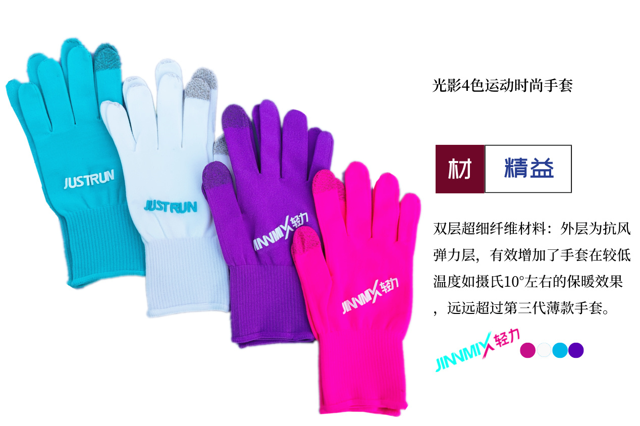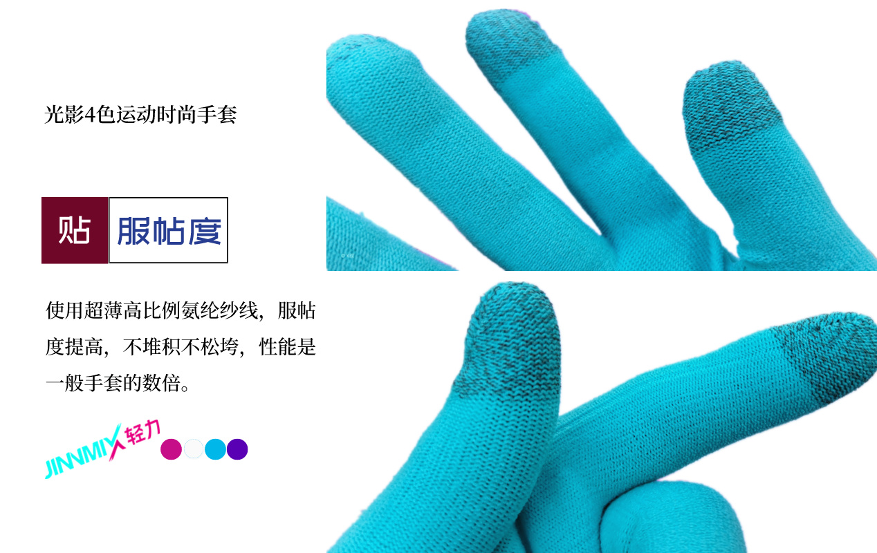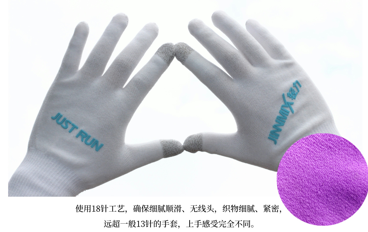 使用高比例的莱卡氨纶,确保超弹服帖不变形;使用极细双层纱线组合,内层吸汗外层导汗;使用18针工艺,确保细腻顺滑、无线头;使用立体植物胶LOGO,高级、不脱落、不变形;使用昂贵银纤维导电纱,确保适应各种制式屏幕触屏自如,触屏灵动;手套罗口二代升级,采用全橡筋加密结构,防止佩戴时间过长,产生松动或者漏口现象。手腕加长,运动时可以起到更好的保护如防晒,保温等效果。好材料、好设计、好功能。