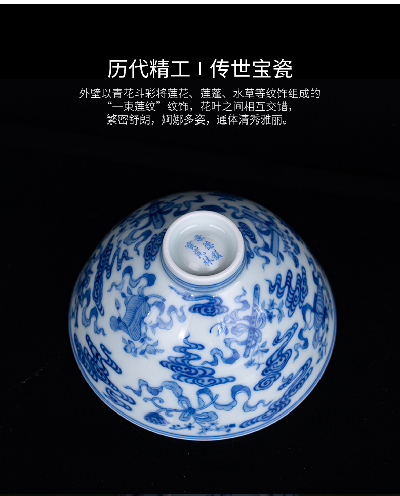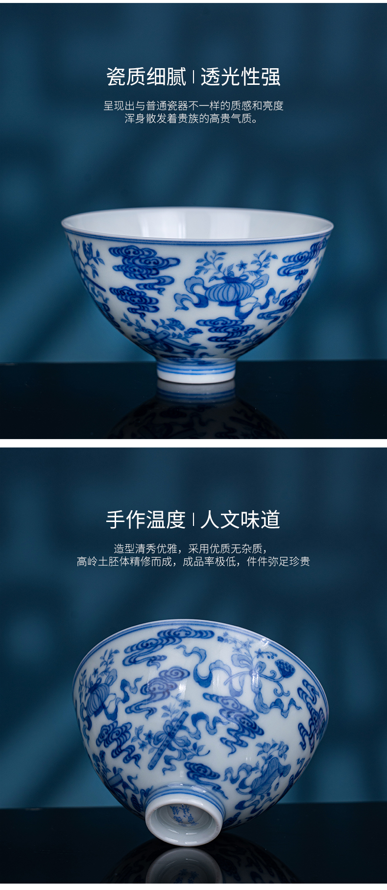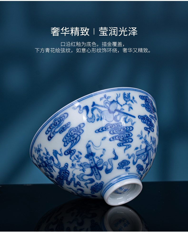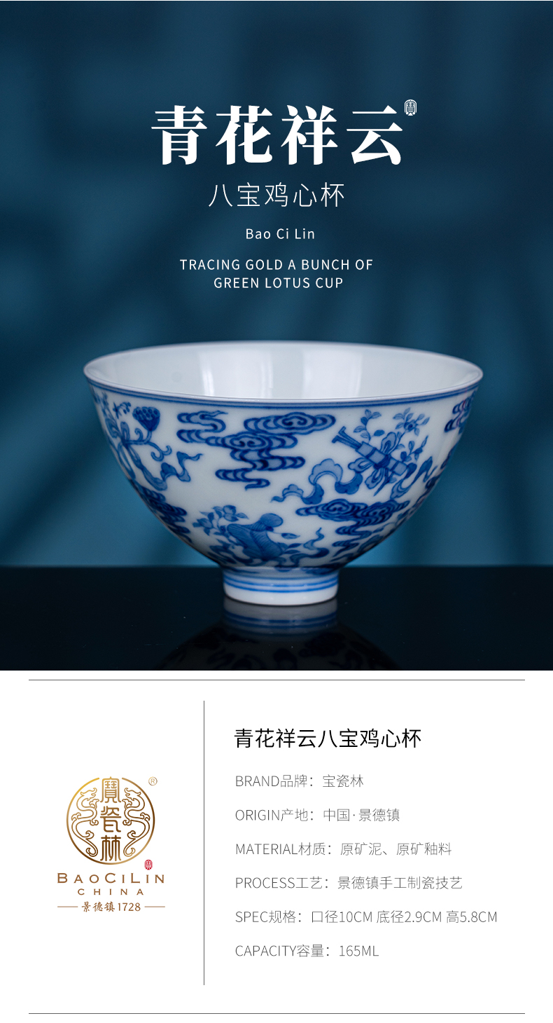 青花祥云八宝鸡心杯