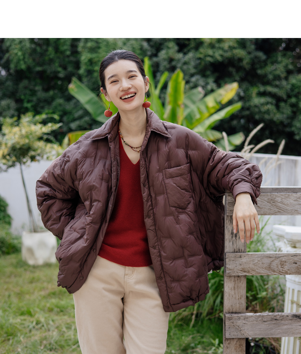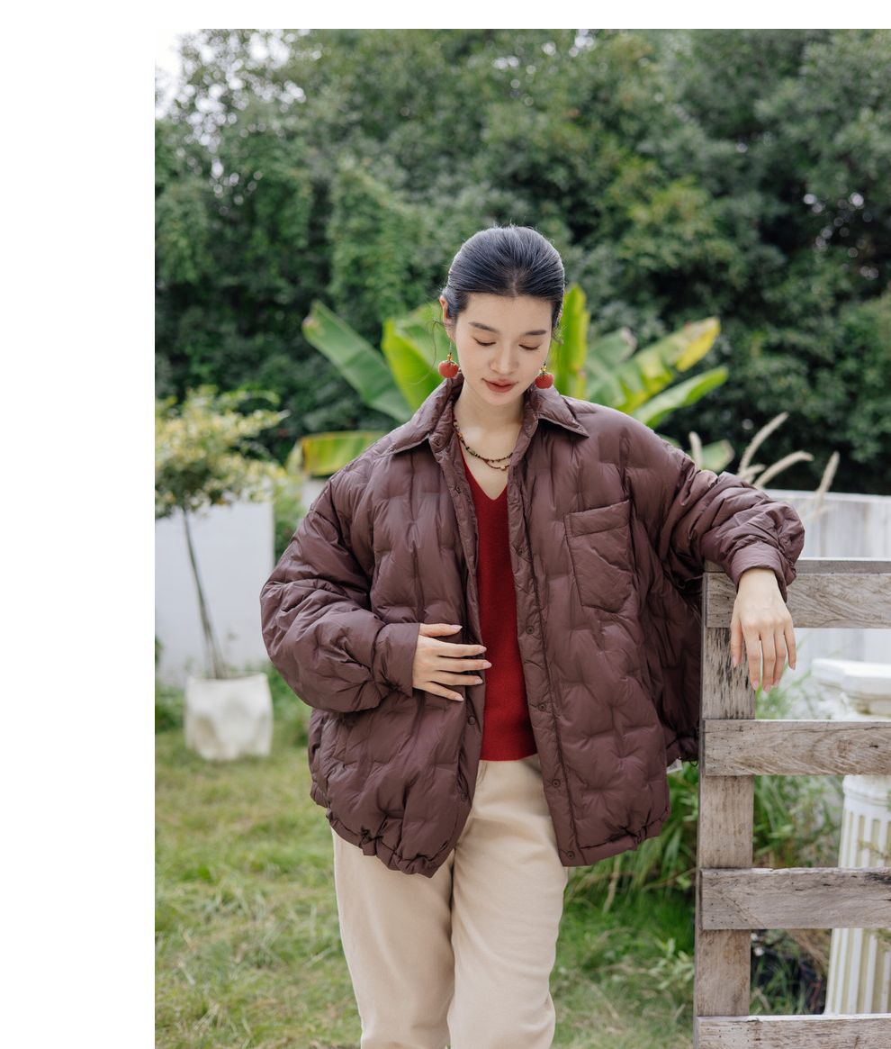 绽放787朵/冬季大廓形衬衫款外套翻领轻薄宽松保暖休闲保暖羽绒服