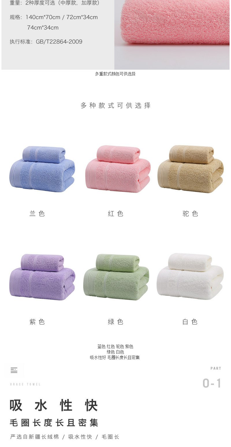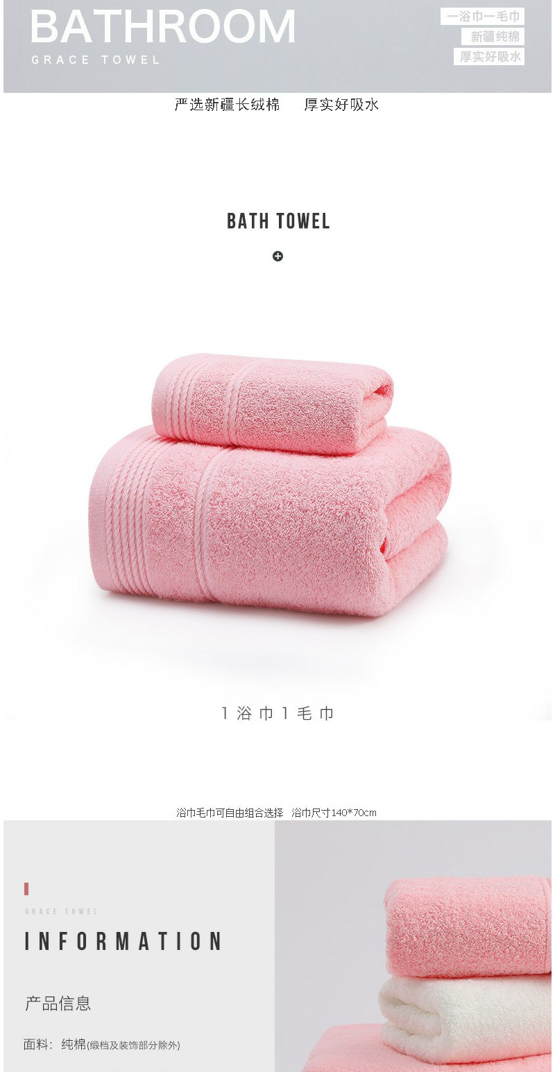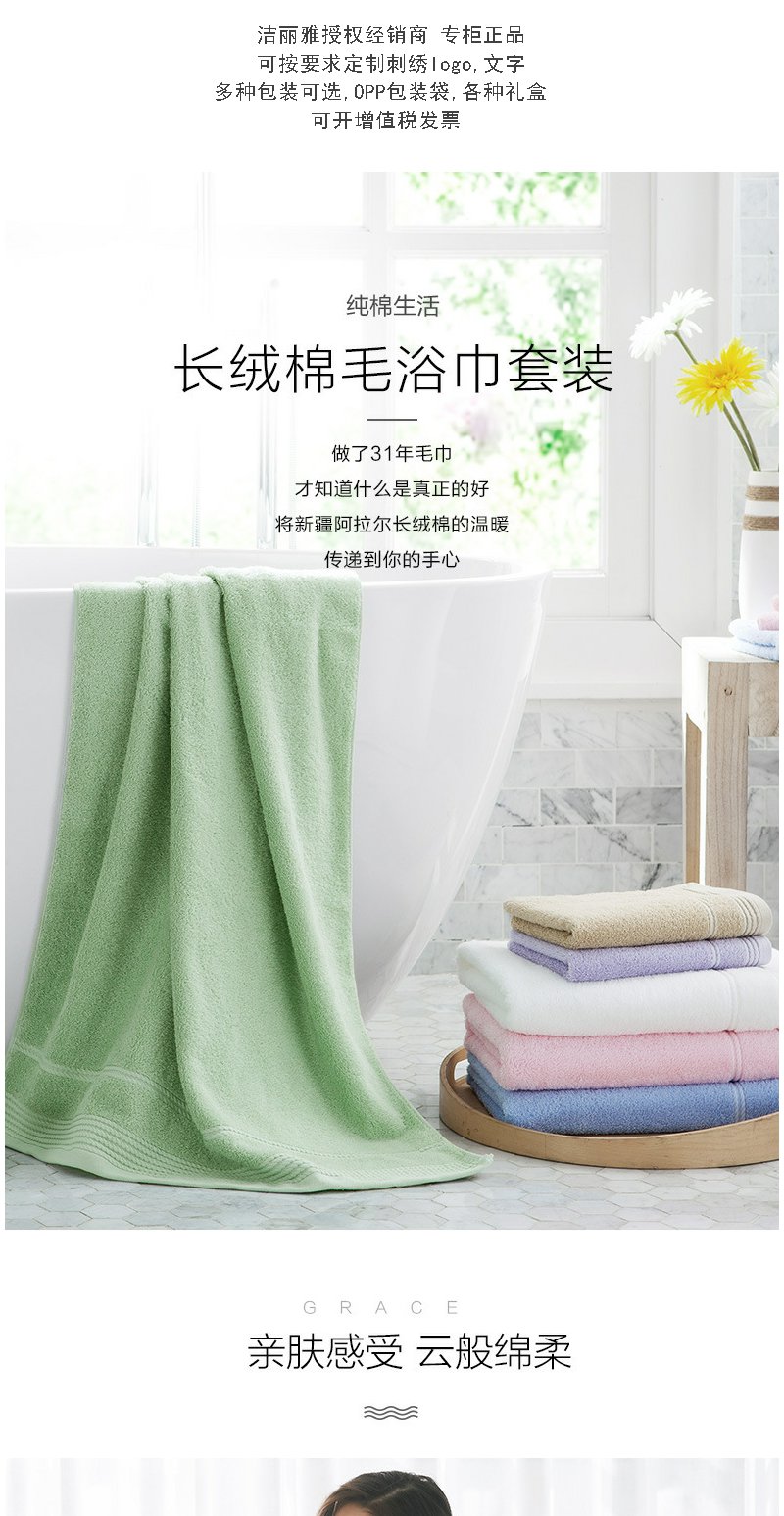 洁丽雅 纯棉大浴巾 成人浴巾多色可选70*140