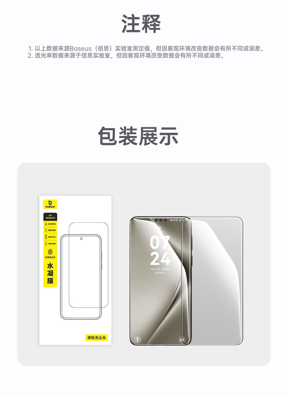 倍思 纳米微晶系列 水凝膜适用 华为系列