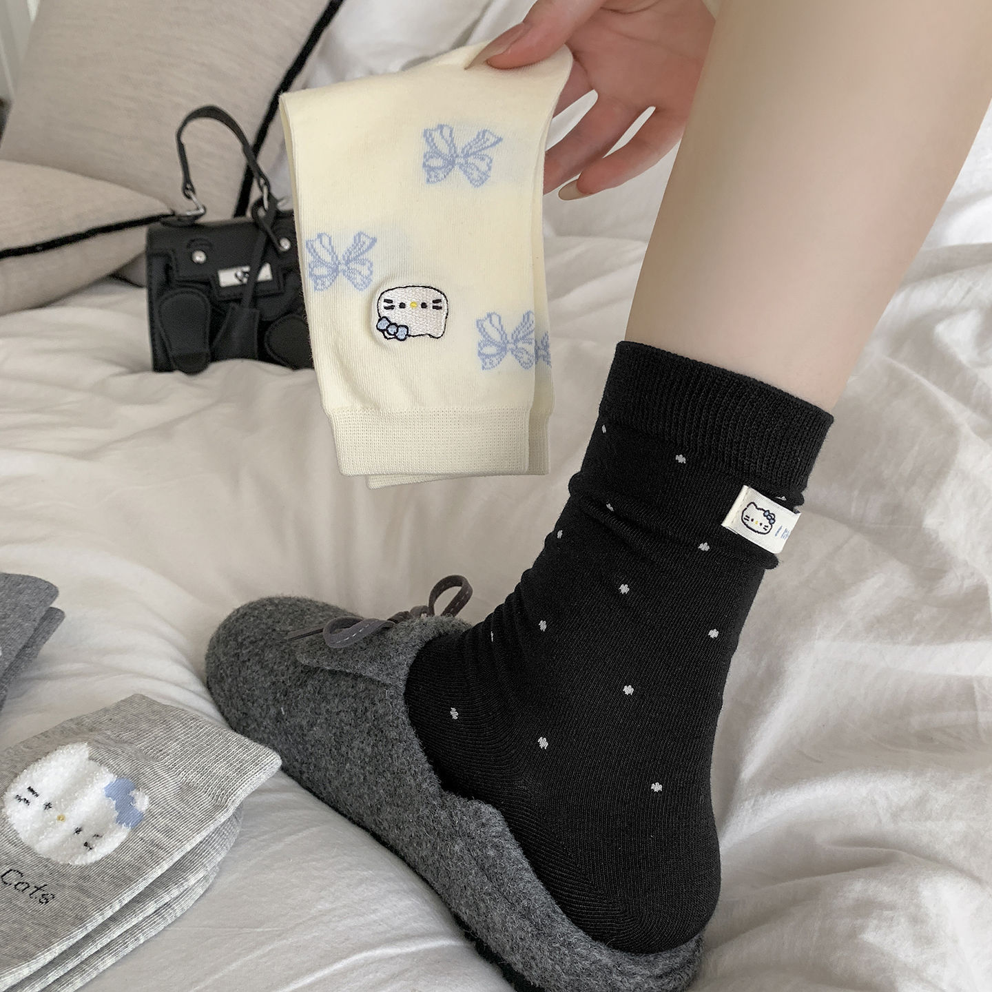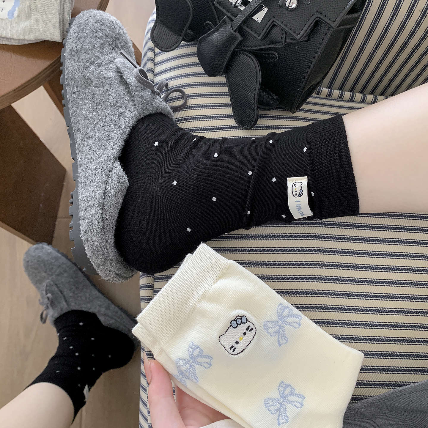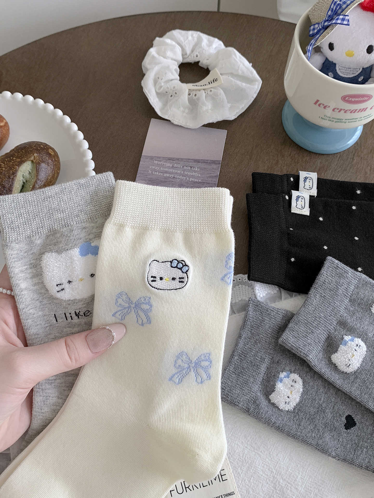 4双一组!春夏季可爱kt猫咪中筒棉质女袜韩版少女风百搭纯色长袜