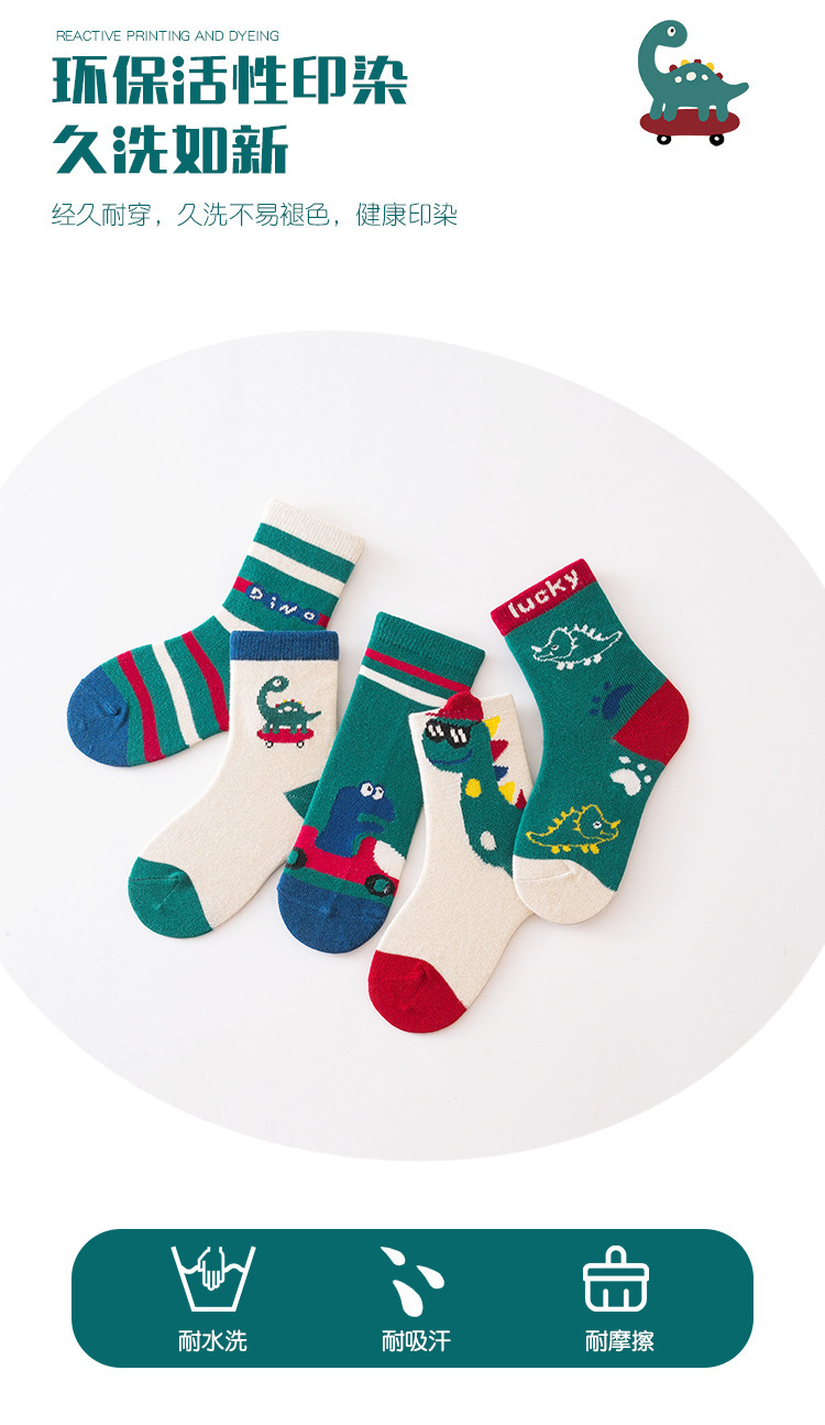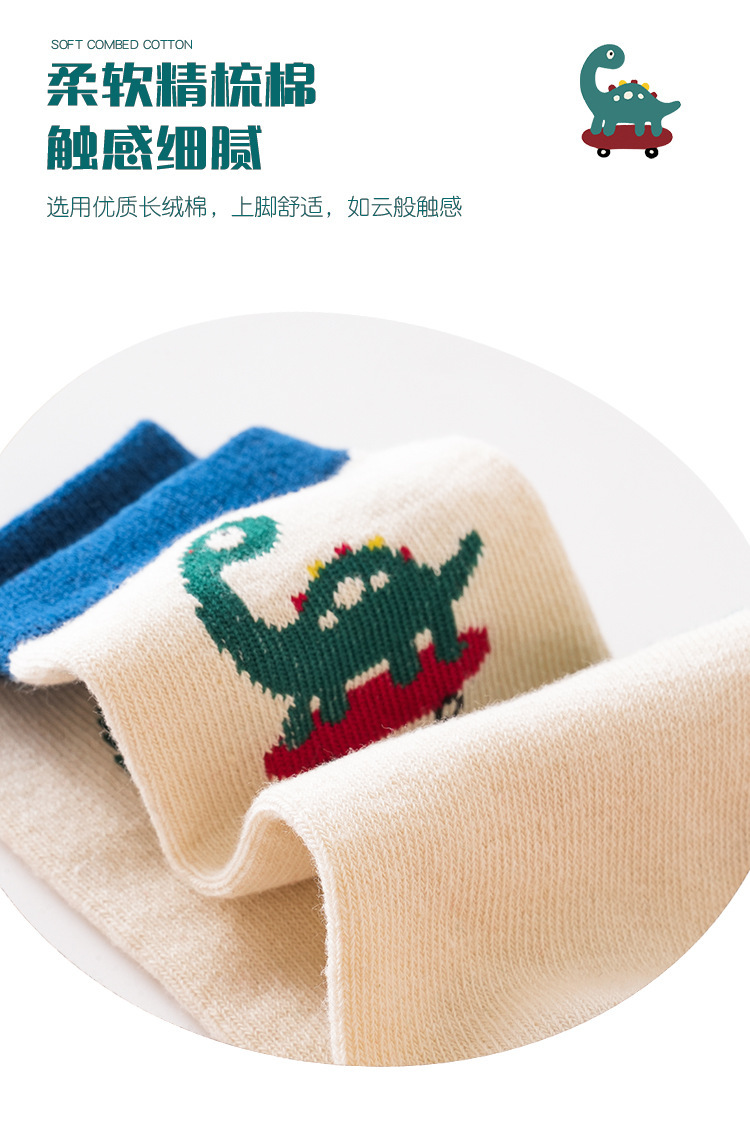 【5双组合装】男童袜子秋冬新款中筒儿童卡通透气精梳棉中大童1-15秋季童袜
