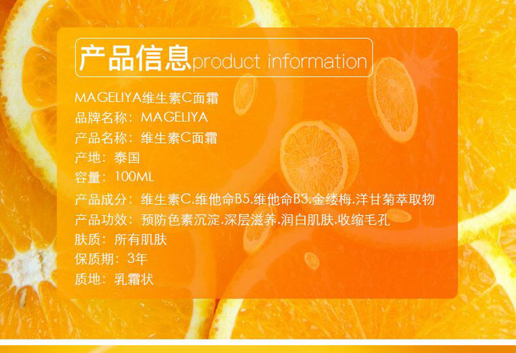 【泰国】MAGELIYA VC面霜 保湿控油滋养提亮肤色维生素C