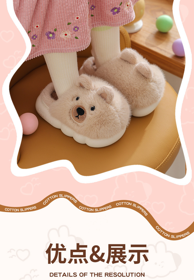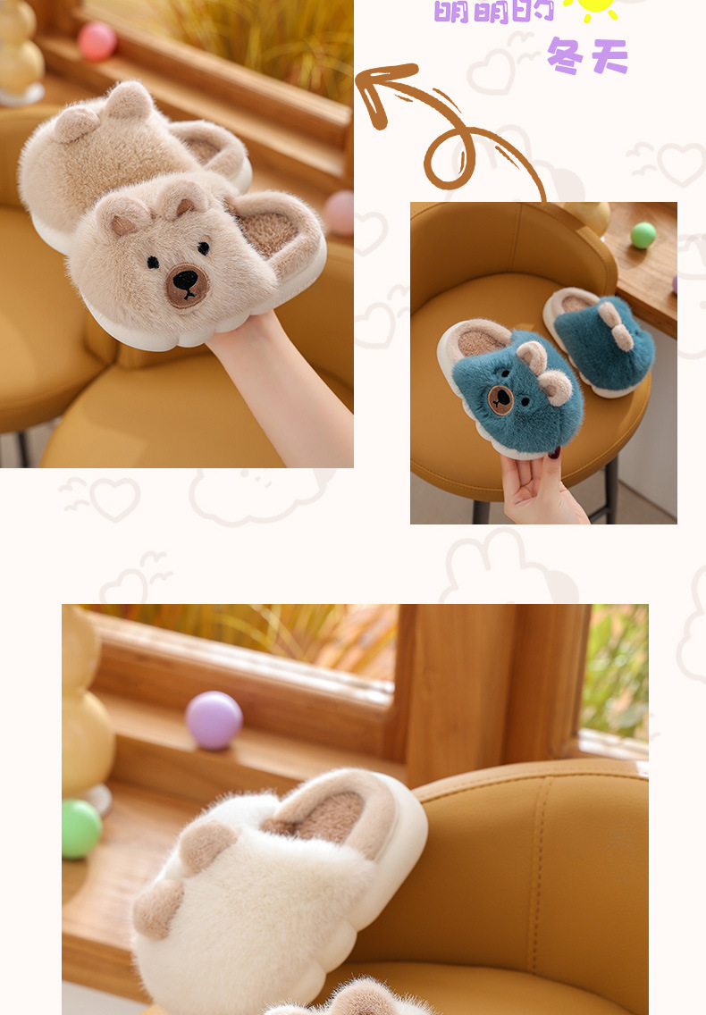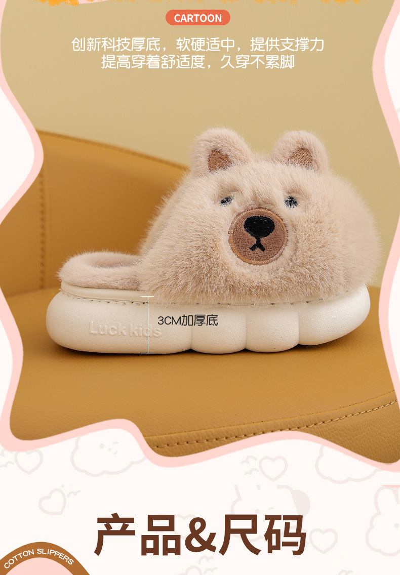 【儿童立体卡通萌趣棉拖鞋】男童冬季保暖加绒拖鞋可爱卡通男孩毛毛拖鞋家居棉拖鞋