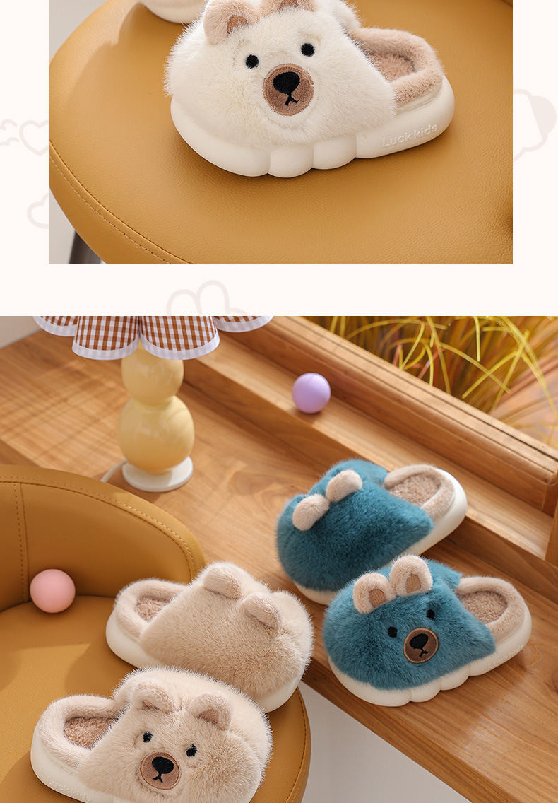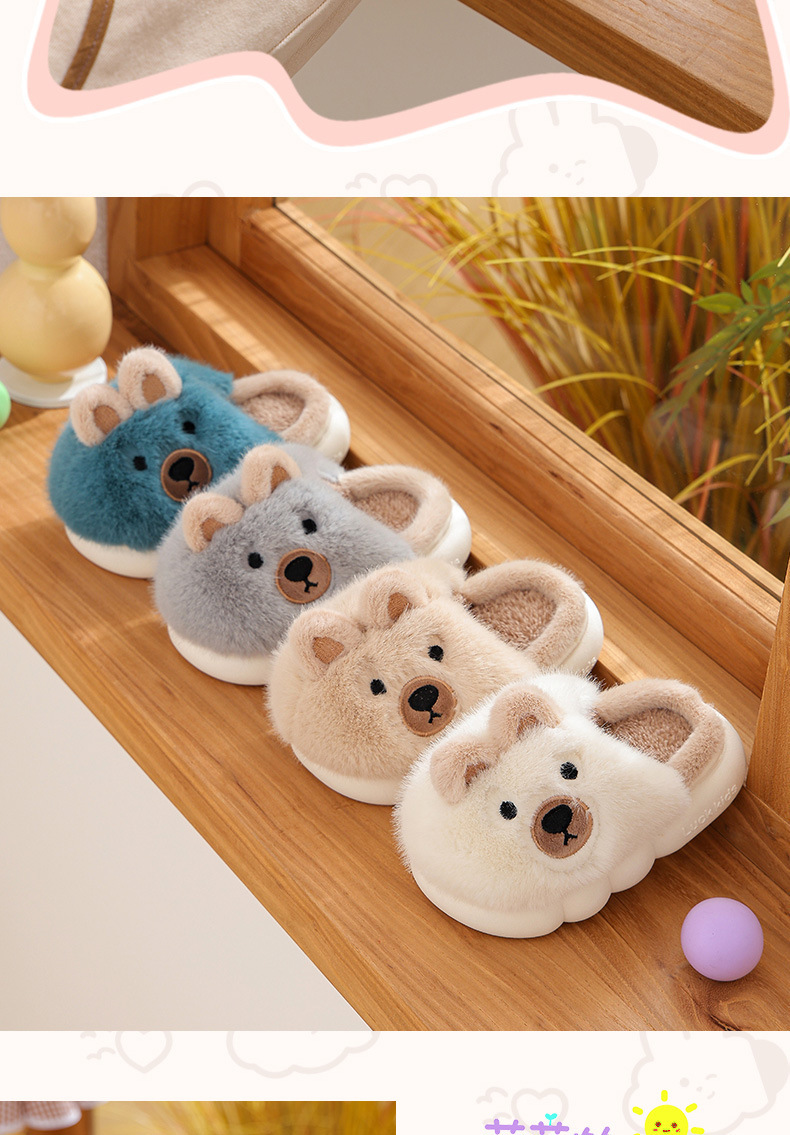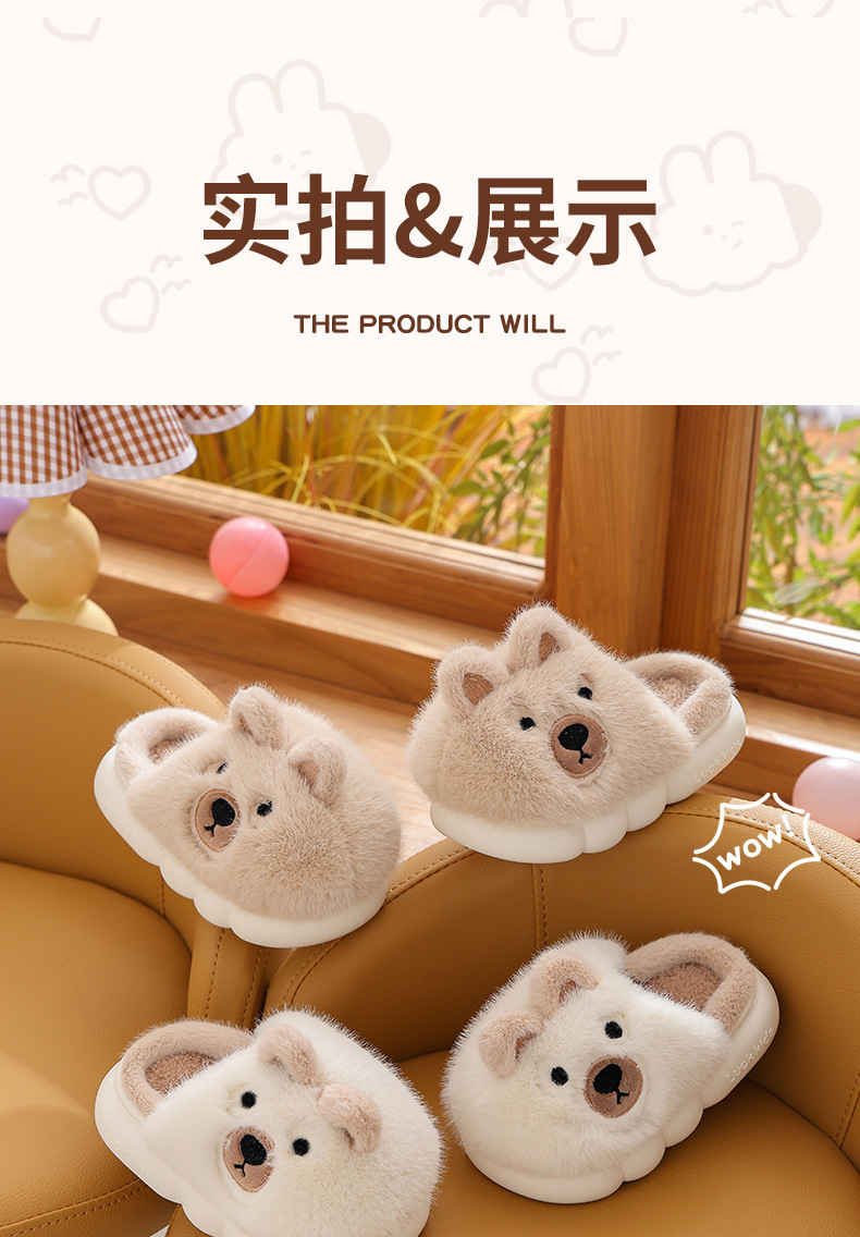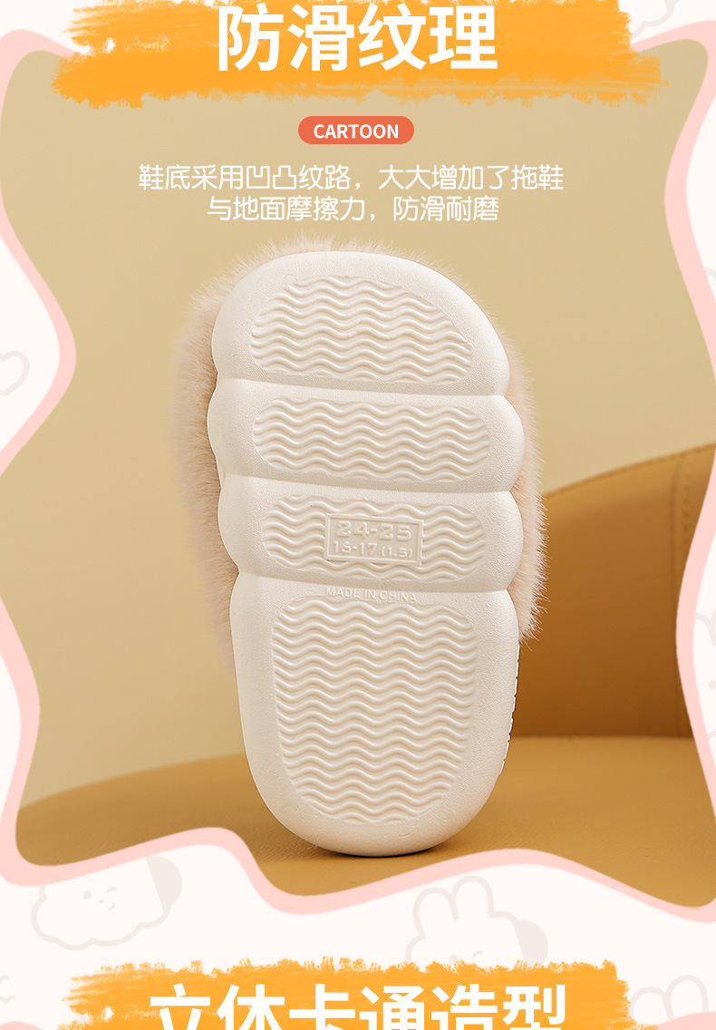【儿童立体卡通萌趣棉拖鞋】男童冬季保暖加绒拖鞋可爱卡通男孩毛毛拖鞋家居棉拖鞋