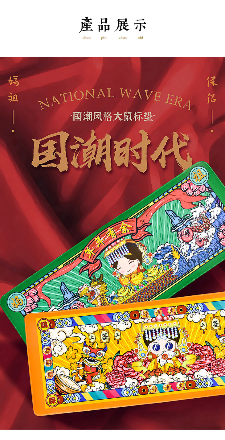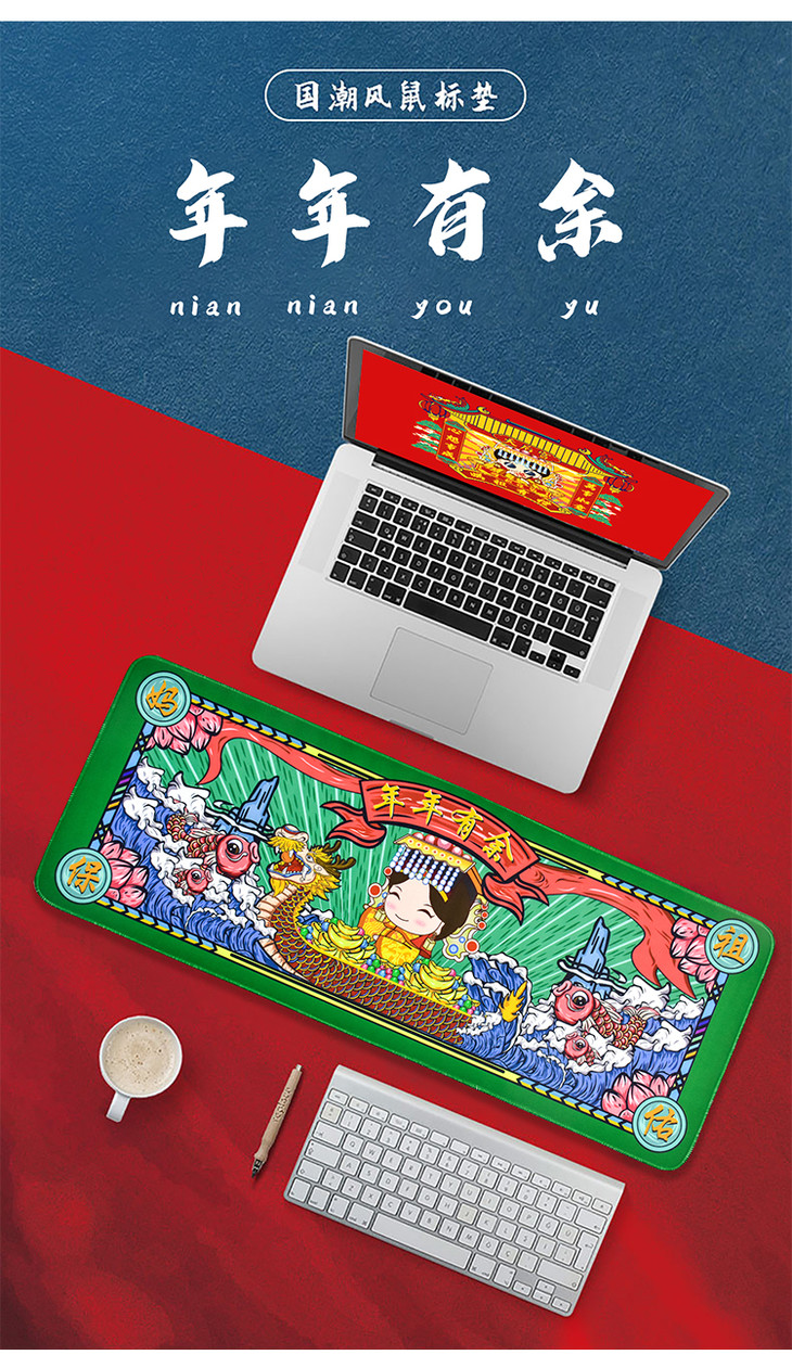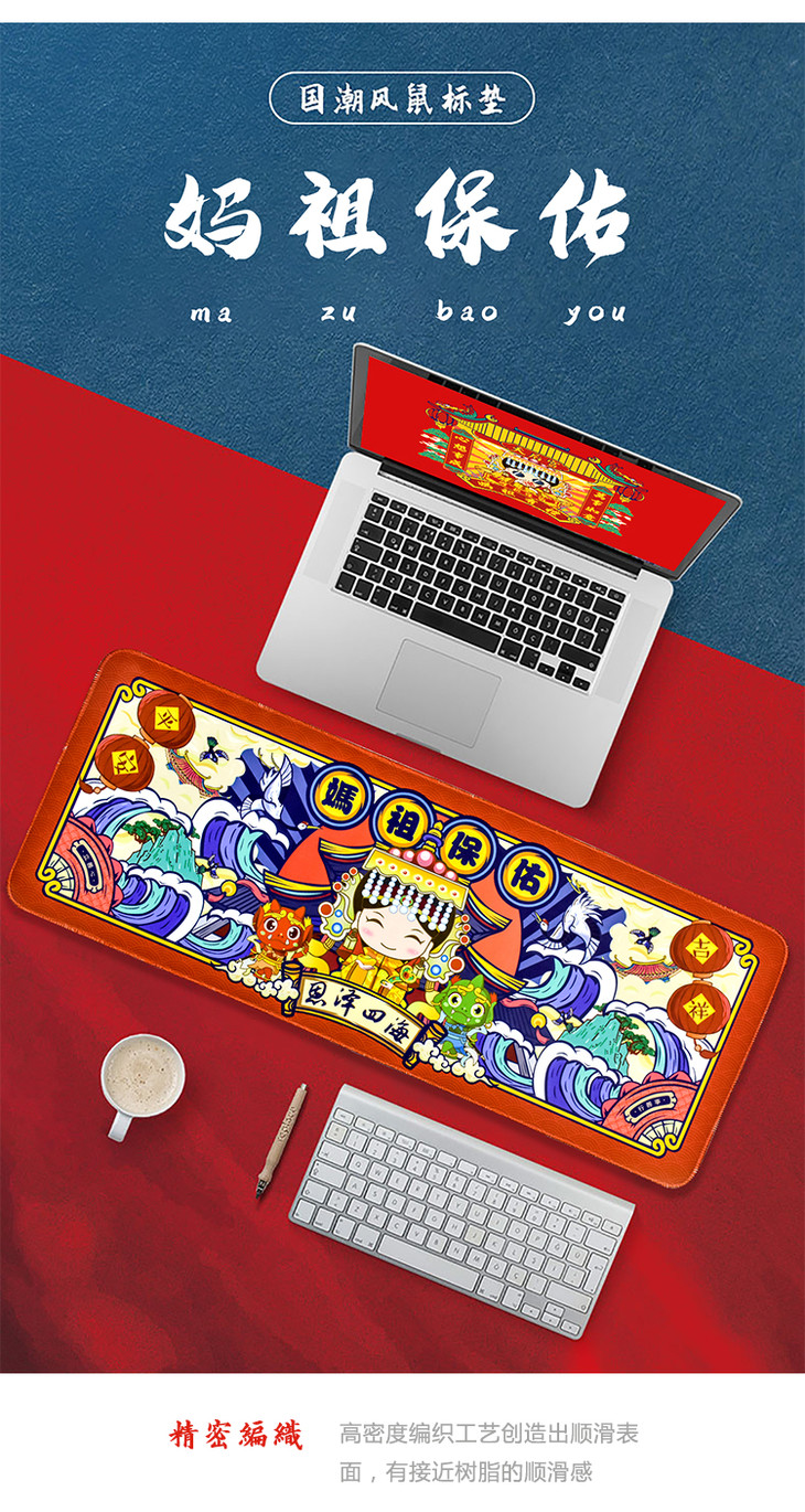 妈祖国潮风大号鼠标垫 防滑桌面垫键盘垫