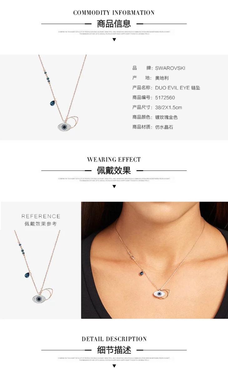 【法国】施华洛世奇 恶魔之眼 玫瑰金 项链套装 启东发货 顺丰包邮