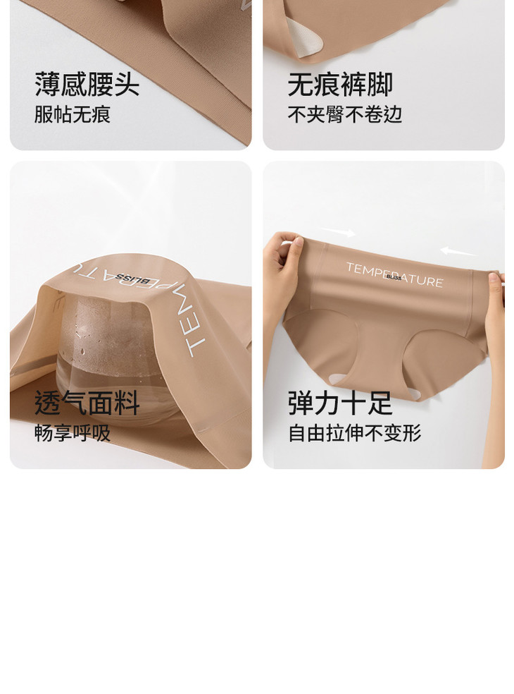 【59.9抢4条❗新款粉底液冰丝内裤】真无痕融入你的皮肤,360°无痕贴合曲线工艺,轻薄无痕透气不闷汗,瑜伽健身无痕10A加长档内裤女士少女生高腰三角裤QQ