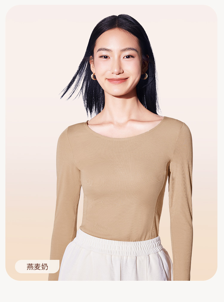 【买三免一】奶糖派保暖内搭轻暖衣秋冬打底衫女士纯色大圆领上衣大胸防静电