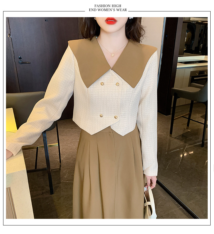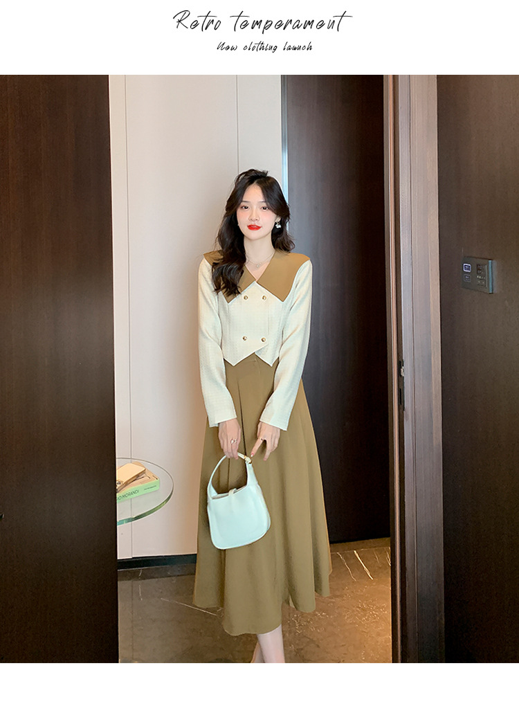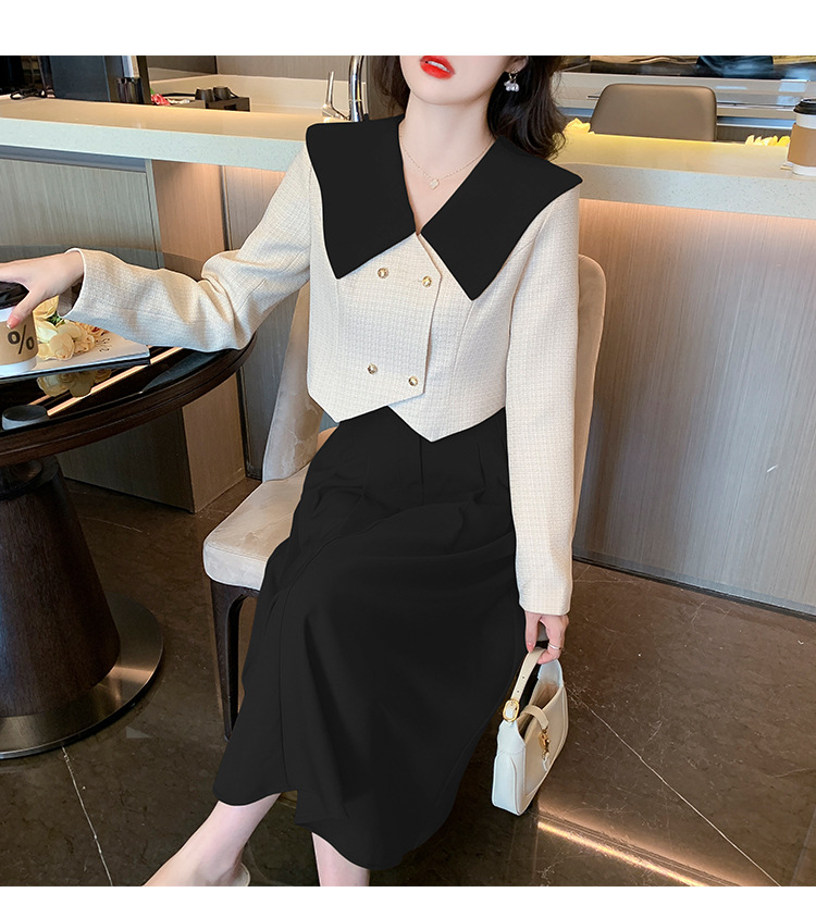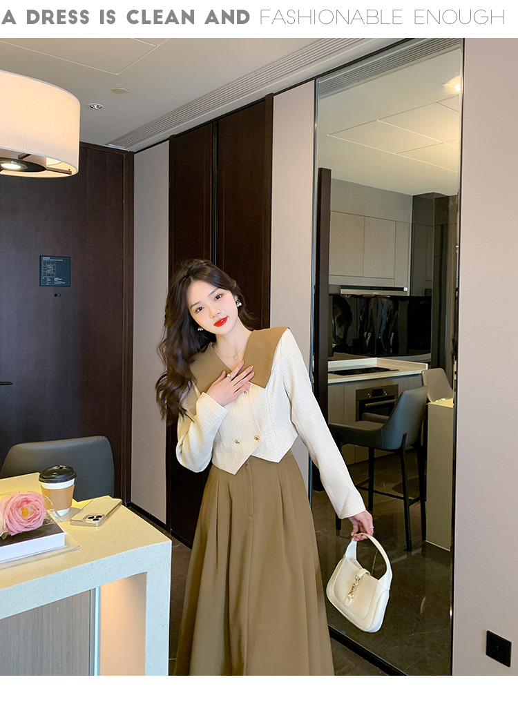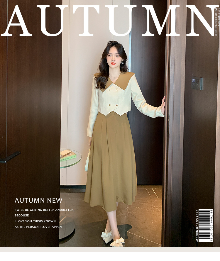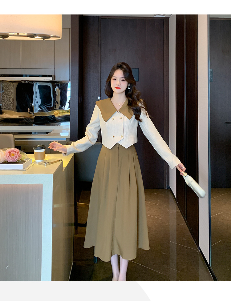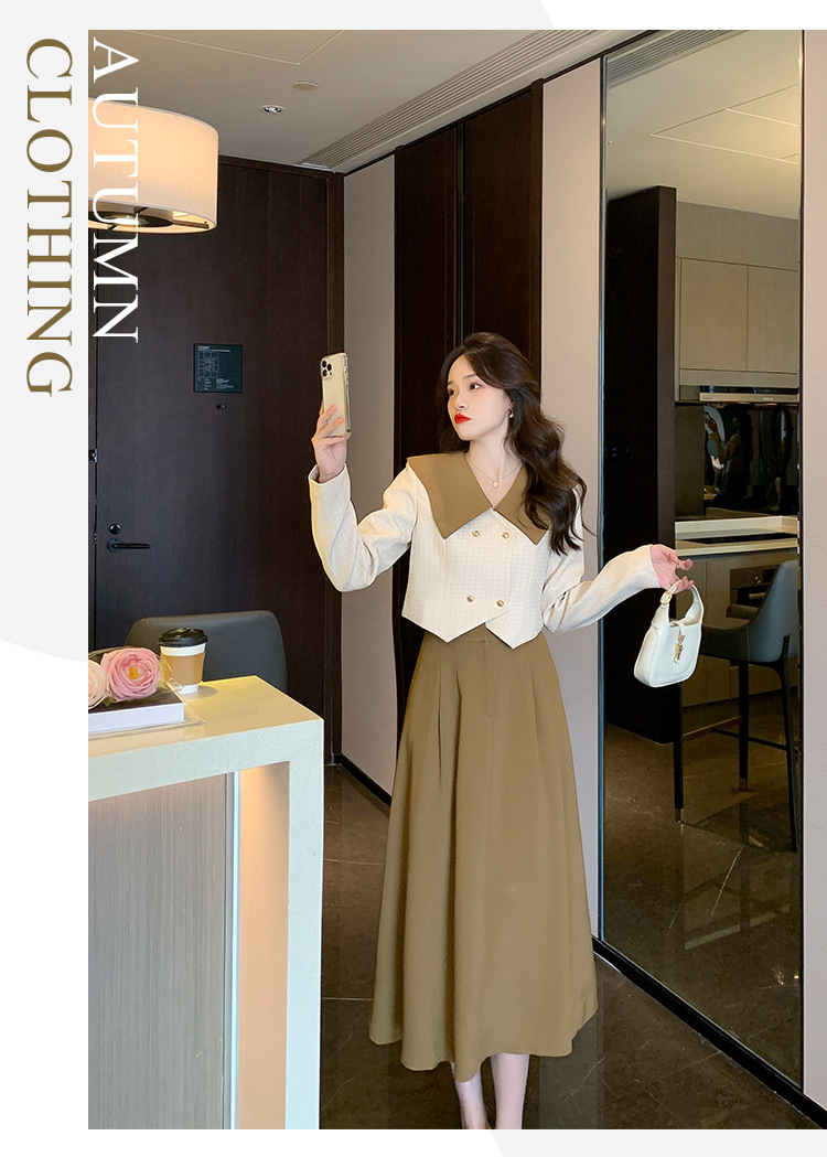 【服装鞋包】-法式复古翻领上衣气质半身裙长裙时尚两件套