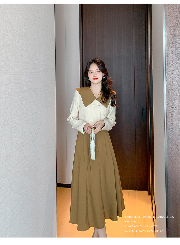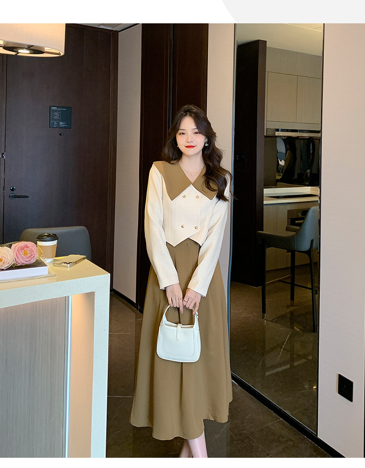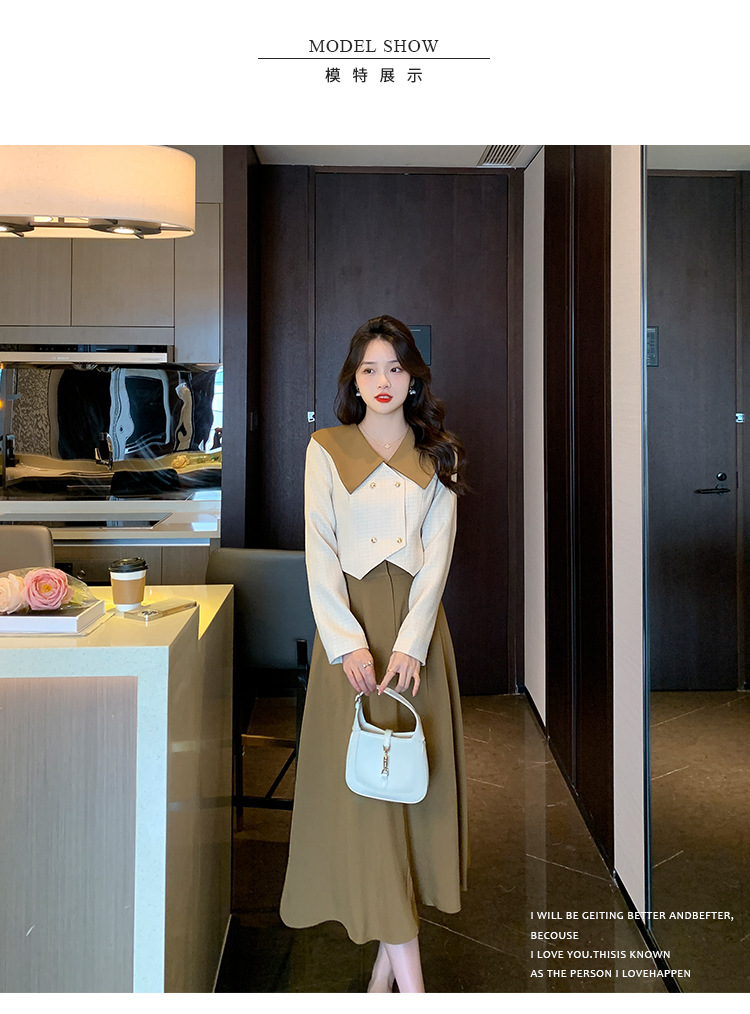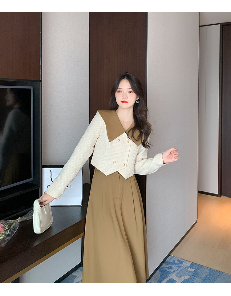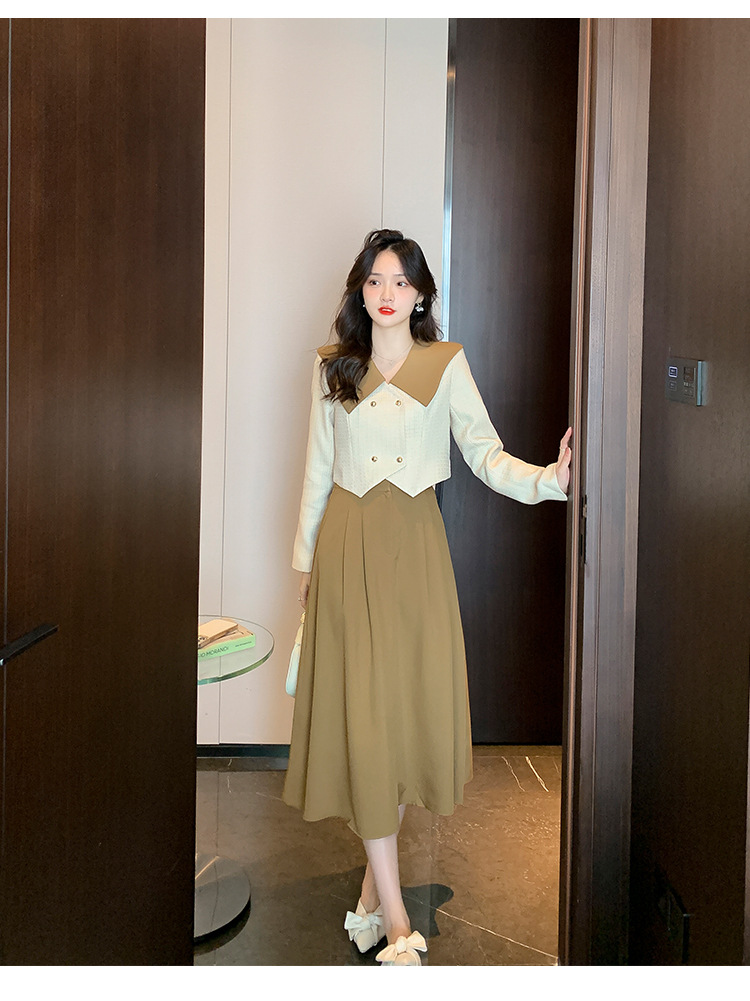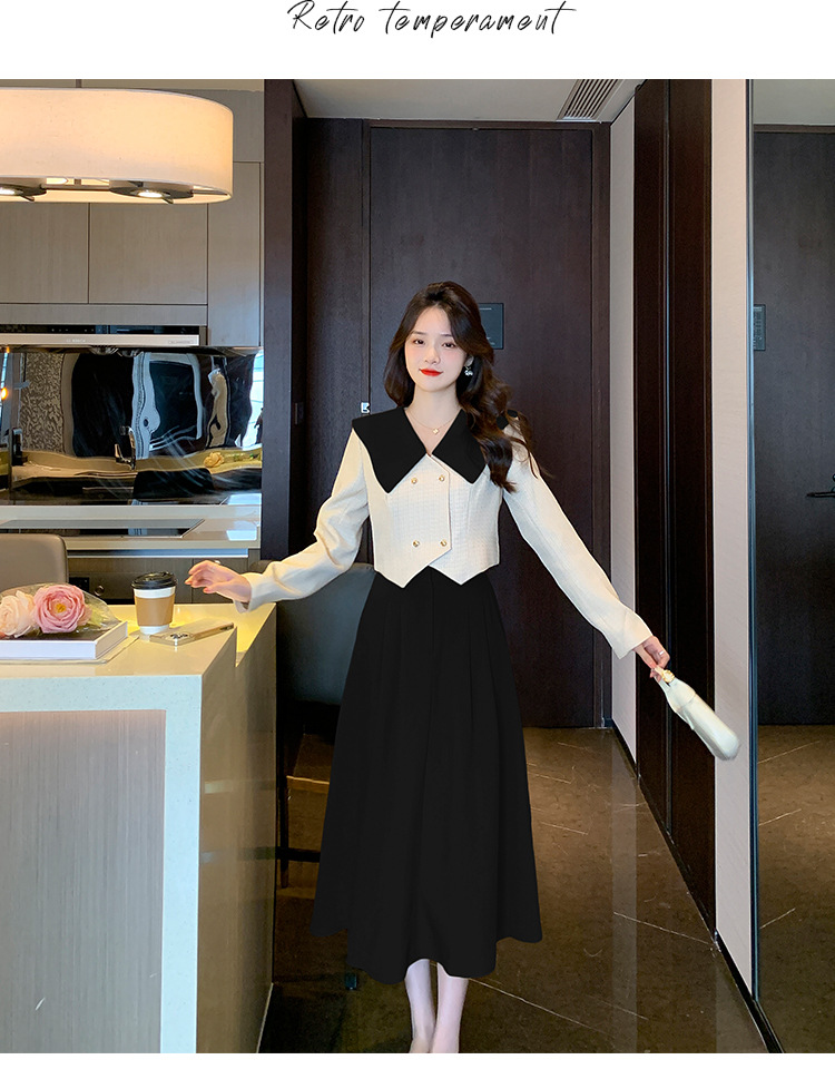 【服装鞋包】-法式复古翻领上衣气质半身裙长裙时尚两件套