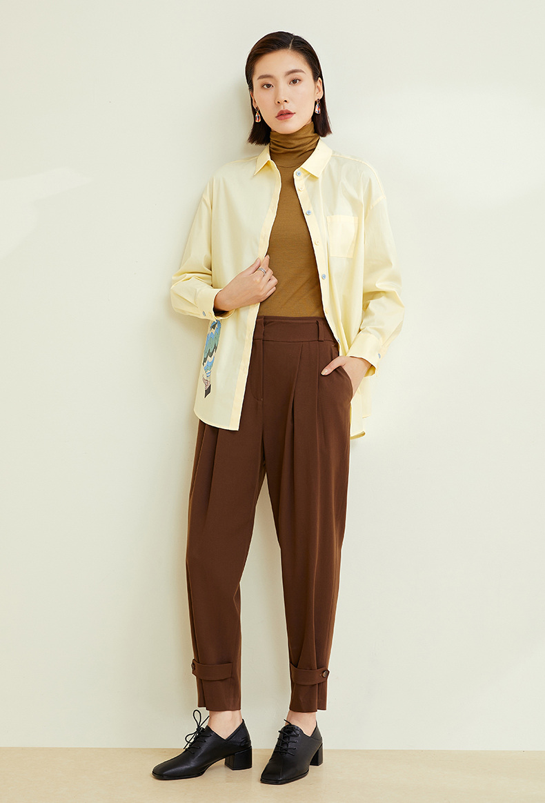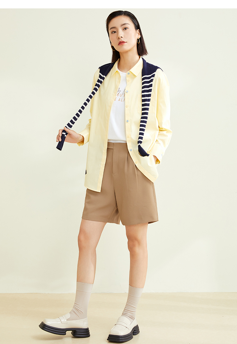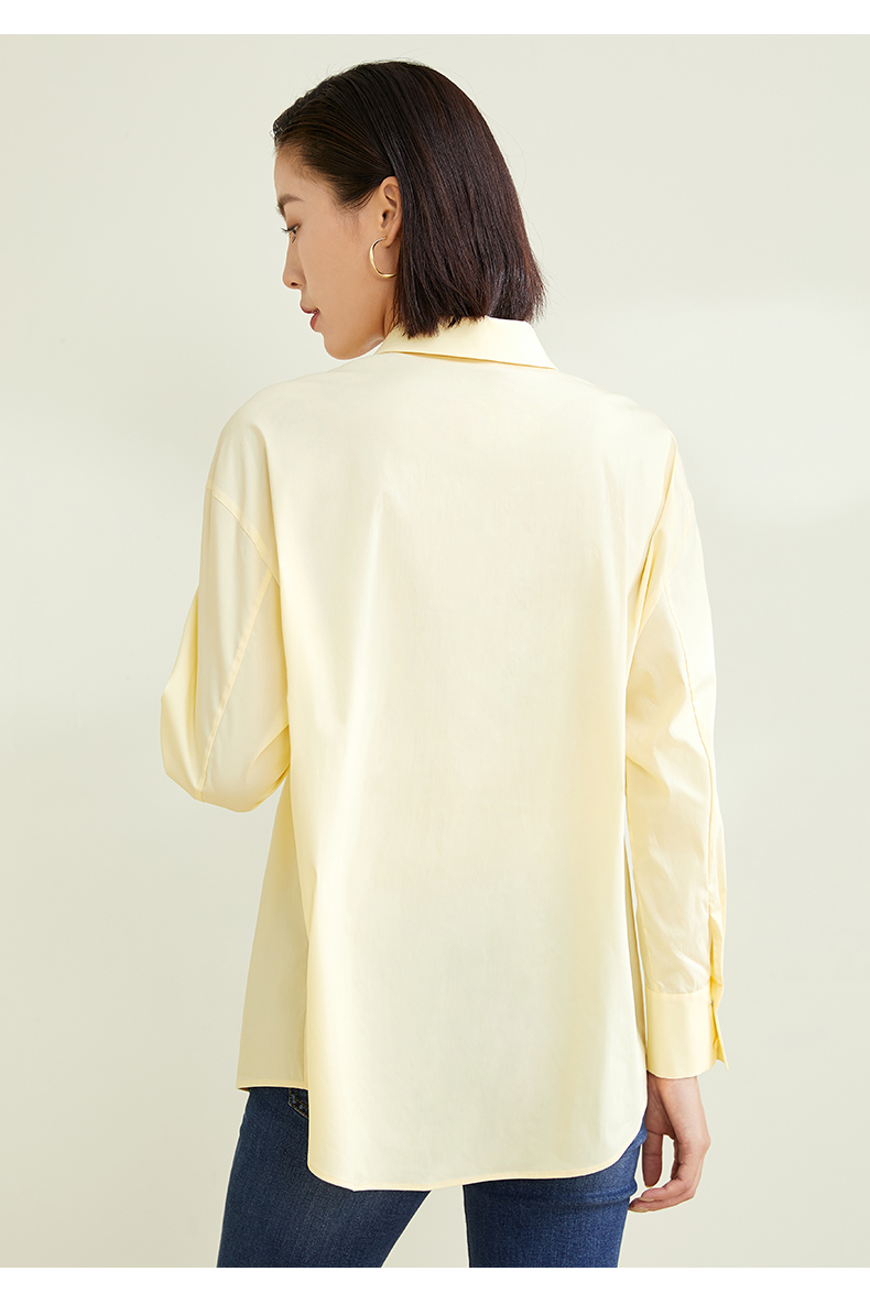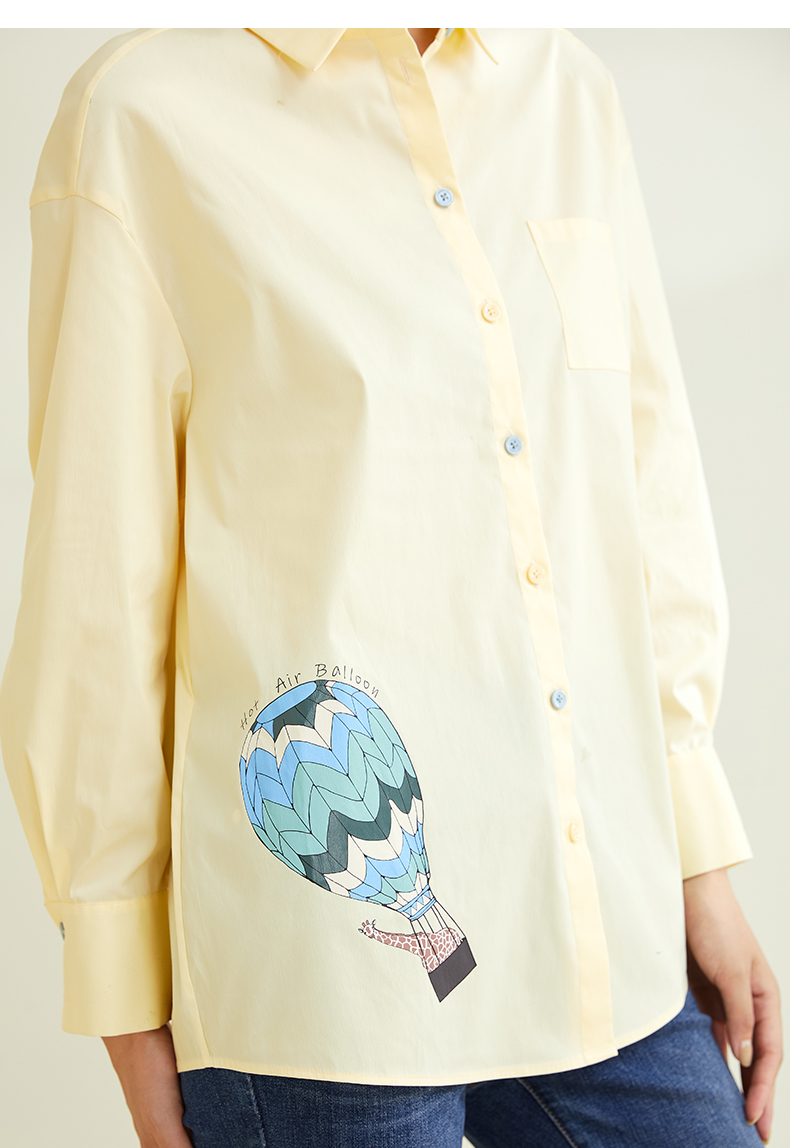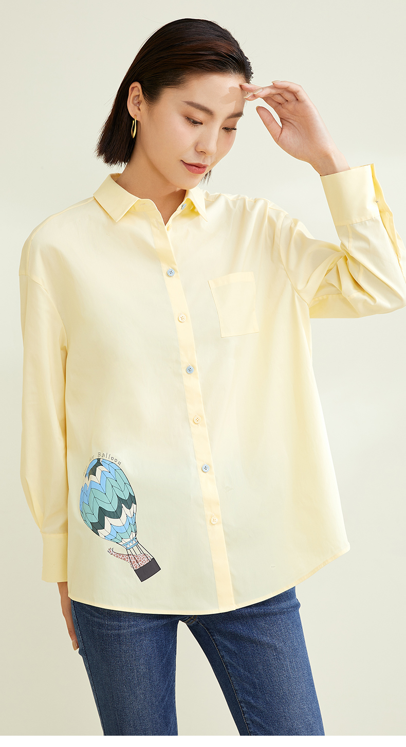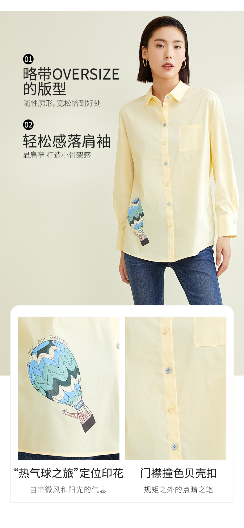 玳莎棉落肩袖衬衫女早秋新品定制印花宽松版型显瘦中长款男友风衬衫上衣 CC31302
